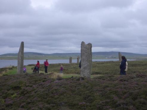 Nach 1 1/2 stündigem Aufenthalt fuhren wir weiter zum Ring of Brodgar. Der Ring von Brodgar ist ein Steinkreis mit einem Durchmesser von 104 Metern.Der Steinkreis wurde vermutlich zwischen 2500 und 2000 v.Chr. errichtet. Von den 60 Monolithen stehen noch 36 und ragen bis zu 4 m aus dem umgebenden Getreidefeld. Sie sind in einem Kreis angeordnet und sind der Wissenschaft ein Rätsel. Man hat errechnet, das für den Aushub des 3 m tiefen Grabens um den Steinring rund 70.000 Arbeitsstunden nötig waren. Was stellte es dar? Sonnentempel, Observatorium, Kalender für die Saatzeit oder Totenkultstätte?