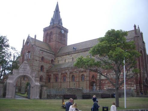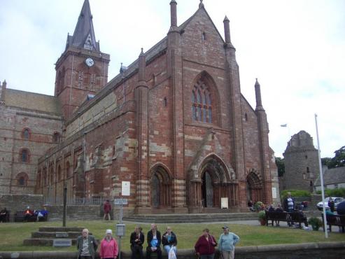 Dort hatten wir wieder 2 Stunden Aufenthalt. Kirkwall ist mit etwas mehr als 6000 Einwohnern der Hauptort der Orkney Inseln. Als erstes sah ich mir den Bishop`s Palace an. Aber nur von aussen, da er doch schon ziemlich verfallen war. Dannach ging ich nochmals in die St. Magnus Cathedral. Sie ist von innen, wie auch von aussen herrlich anzusehen. Die Gemeinde veranstaltete gerade einen Themenwettbewerb im inneren der Kirche. Verschiedenste Organisationen stellten Themen (Strand, Freizeit, Sport...) in Blumenform dar. Es wurde um eine kleine Spende zur Erhaltung der Kirche gebeten, was ich natürlich machte. Dannach besuchte ich das Kirkwall Museum, welches keinen Eintritt kostete aber dennoch äusserst Interessant war. Hier wurde die Geschichte der Inseln bis zum heutigen Tag dargestellt mit vielen Ausstellungsstücken. Am meisten faszinierten mich die Informationen über das Ba`Game: