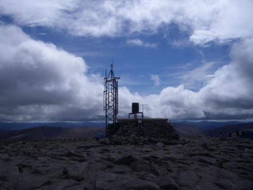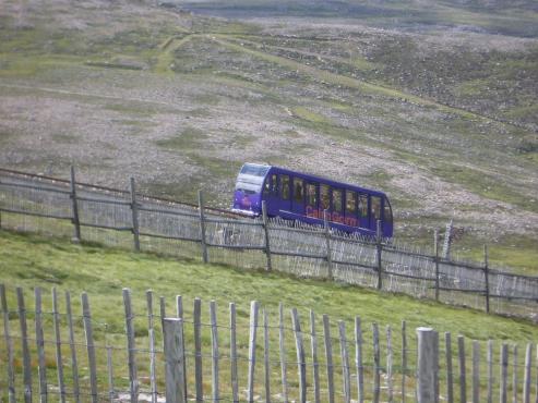 Ich mußte einige kleine Bachläufe überqueren und fand dann auch wieder einen Weg. Auf einer Anhöhe hatte ich eine wunderbare Aussicht in die Highlands. Leider konnte ich nicht herausfinden welcher Berg der Ben Macdui war. Ich ging nun Richtung Osten wo ich vermutete das dort der Cairn Gorm Gipfel liegt. Erst als ich schon zu weit gewandert war, sah ich einige Wanderer die auf einen hohen Gipfel marschierten, der wahrscheinlich dem Ben Macdui gehörte. Da die Zeit schon fortgeschritten war und ich heute auch noch eine weite Autofahrt vor mir hatte, beschloss ich nur auf den Cairn Gorm zu wandern. Naja beim nächsten Mal werde ich mir Kompass und Karte besorgen. Immer wieder hatte ich eine herrliche Aussicht in die Täler und umliegenden Gipfel. Da sah ich an einem kleinem Bergsee ein Rudel Rotwild oder waren es Rentiere? Sie marschierten schnurstracks auf mich zu. Ich filmte und machte Fotos fast gleichzeitig. Nur ca. 50 Meter von mir entfernt gingen sie langsam an mir vorbei. Es waren ca. 15 Tiere. Wunderschön anzusehen! Langsam verschwanden sie dann hinter einer Bergkuppe. Ich ging weiter und erreichte dann nach einer anstrengenden Steigung den Gipfel des Cairn Gorm. Dort waren schon einige Besucher und mitten auf dem Gipfel stand eine Wetterstation. Von dort war dann die Bergbahn nicht weit. Ich beschloss trotzdem zu Fuß wieder zum Parkplatz zurückzukehren. Der Abstieg war etwas nervig, da ich keinen Weg fand und so querfeldein über die Begwiesen nach unten marschierte. Als ich am Parkplatz angelangt war, fing es aufeinmal an stark zu regnen. Ich rettete mich gleich ins Auto. Da auch gleichzeitig die Sonne scheinte und auch fast keine Wolken am Himmel waren, hörte es auch bald wieder auf.