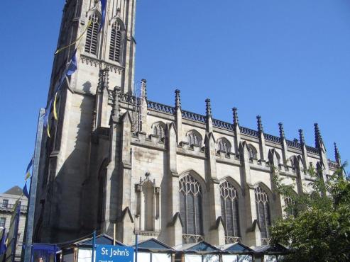 Ich stieg in der New Town bei der St. John`s Kathedrale aus. Von dort marschierte ich vorbei am Caledonian Hilton weiter Richtung Castle.