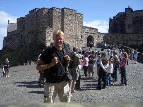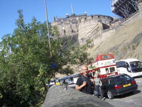 Ich marschierte die Royal Mile entlang. Die Straße war überfüllt von Schaulustigen, da gerade das dreiwöchige Edinburgh Festival stattfand. Edinburgh jedes Jahr für drei Wochen im August die größte Schaubühne der Welt für Kunst, Musik, Drama, Tanz und Straßentheater. Alle paar Meter sah man Darsteller die ihre Show präsentierten. Immer wieder hielt ich an und beobachtete das wilde Treiben. Pantominen, Entfesslungskünstler, Straßenmusikanten, Theaterdarsteller gaben ihr Bestes. Gleich am Anfang der Meile steht linkerhand das Gebäude der Camera Obscura. Der Eintritt kostete 7 Pfund. In mehreren Sockwerken befinden sich Holographieausstellungen, die sehr interessant waren. Aber das Highlight befand sich auf dem Dach. Man hatte eine herrliche Aussicht und die sehenswerte Show der Camera Obscura befindet sich seit 1853 hier. Immer ca. 30 Personen dürfen in einen engen Raum indem sich eine riesige gewölbte Scheibe auf dem Boden befindet. Hier werden die Hauptattraktionen der Stadt, auf witzige Weise, aus der Vogelperspektive auf diese Fläche projiziert, und nichtsahnende Fußgänger springen auf der Straße über Papierservietten. Sehr lustig und empfehlenswert !!!