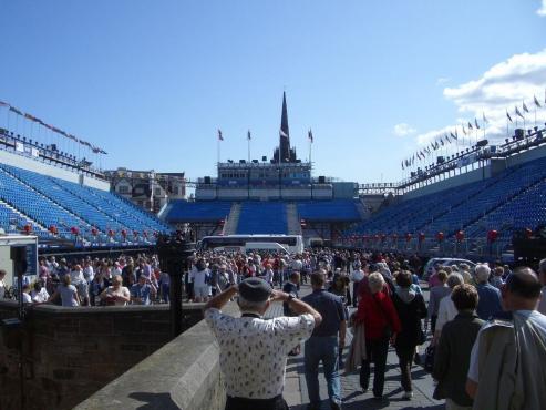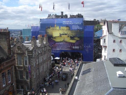 An der Burg angekommen holte ich mir erst eine Eintrittskarte für die Besichtigung. Mit dem Explorer Pass kostete mich diese nichts. Im Innenhof des Castles waren riesige Tribünen aufgebaut, da um diese Zeit jeden Abend das alljährliche Royal Military Tattoo stattfand. Dies ist eine folkloristische-militärische Veranstaltung mit einem farbenprächtigem Aufmarsch von Dudelsackformationen aus allen Teilen Schottlands und von internationalen Militärkapellen.