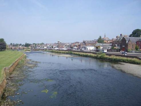 Um die Mittagszeit erreichte ich bei Sonneschein und fast zu warmen Temperaturen die Stadt Dumfries. Ich parkte mein Auto und machte mich auf zur Besichtigung der Stadt. Mitten durch Dumfries geht der Fluss Nith. Die ganze Stadt besteht aus verträumten Gassen und Backsteinhäusern. Sie ist geprägt von dem Poeten Robert Burns, dem zu Ehren auch eine Lebensgroße Statue den Stadtkern schmückt. Ich kaufte mir noch eine Trekking und eine kurze Hose, da ich diese vergessen hatte.