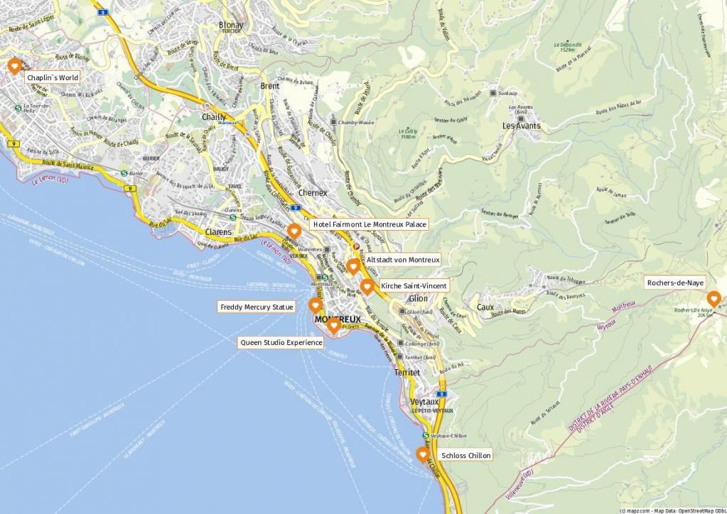 - 1. Karte von Sehenswürdigkeiten in Montreux