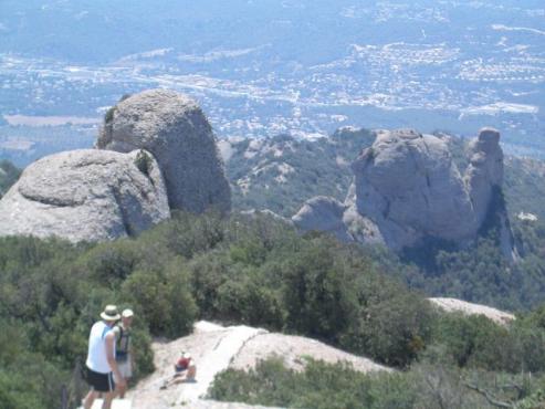 Wir entscheiden uns auf den höchsten Gipfel zu wandern. Zuerst nehmen wir die "Sant Joan" Drahtseilbahn. Zu Fuß geht es weiter nach Nordwest. Gegenüber sieht man die Steinformation "San Salvador". Im Hintergrund sieht man Sant Jeroni. Wir gehen zwischen Felsen und teilweise im Wald. Nach ca. 1 1/2 Stunden erreichen wir die Sant Jeroni Einsiedlerei, wo wir weiter den Aufstieg zum Gipfel und höchsten Punkt "Sant Jeroni" (1236 Meter) wagen. Von hier haben wir eine herrliche Aussicht über das ganze Gesteinsmassiv.