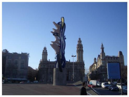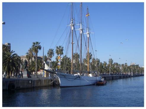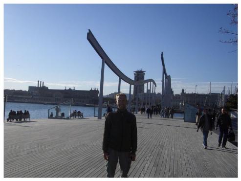 Nachdem wir unser Zimmer (leider ohne Fenster aber sonst sauber und geräumig) bezogen, begann unsere Stadtbesichtigung. Wir marschierten zur Christoph Columbus Statue (Die 59 m hohe Säule trägt den "Entdecker" Amerikas, der nach seiner ersten Reise in die neue Welt in Barcelona von dem spanischen Königspaar Isabella und Fernando empfangen wurde). Leider war der Aufzug zur Spitze, mit herrlichem Ausblick über die Stadt, noch bis Ende März geschlossen. Wir gingen weiter am World Trade Center vorbei über die Rambla del Mar, ein Holzsteg zum Maremagnum. Wir schlenderten kurz durch das Einkaufszentrum und genossen die Aussicht auf das Meer. Wir hatten Sonnenschein und herrlich blauen Himmel. Leider war es mit ca. 12 Grad etwas kühl.