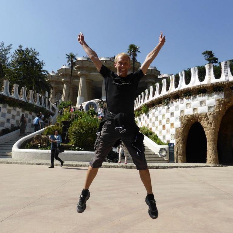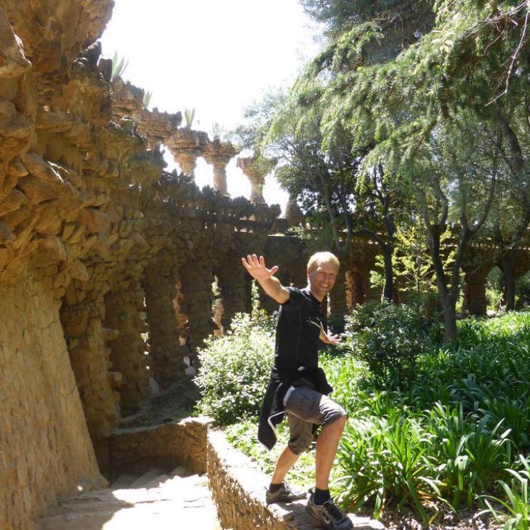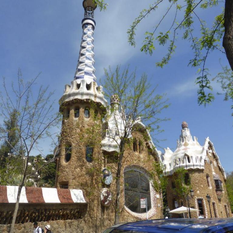 Unser nächstes Ziel war wieder ein Gesamtwerk Gaudis, der Park Güell. Leider bekamen wir erst eine Eintrittskarte für halb 4 zugewiesen. Die 2 Stunden vorher besuchten wir den frei zugänglichen Teil des malerischen Parks. Leider wurde während des Besuchs die Geldbörse incl. sämtlicher Karten von Lobbe geklaut. Barcelona ist bekannt für seine Taschendiebe, was sie unter Beweis stellten. Trotzdem waren wir fasziniert von den Märchenhäusern, Drachen und schräg gegen den Berg gestemmte Arkaden.
