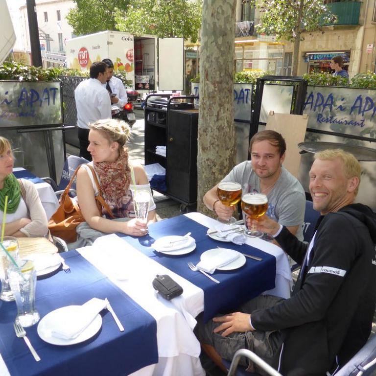 Spätnachmittags fuhren wir mit dem Bus weiter bis zum Stadion vom FC Barcelona, dem Camp Nou. Leider reichte die Zeit nicht mehr für eine Führung, so dass wir es nur von außen besichtigten. Wieder mit dem Bus fuhren wir zum Ausgangspunkt zurück, wo wir als erstes eine Anzeige wegen Diebstahl bei der Policia machten. Im Hotel machten wir uns frisch und gingen dann nochmals auf Wanderschaft. Ein nettes Lokal fand sich natürlich auch und wir konnten das Abendessen genießen. Zum Abschluss des fast gelungenen Tages gab es noch einen Cocktail und ein Guinness in einem Irish Pub.