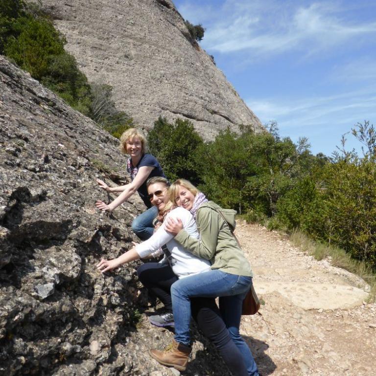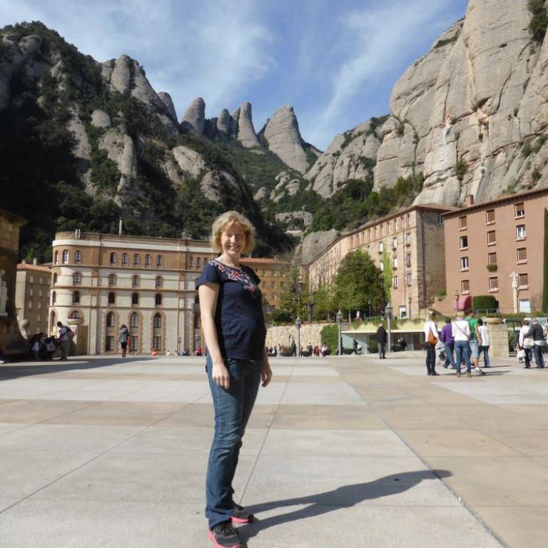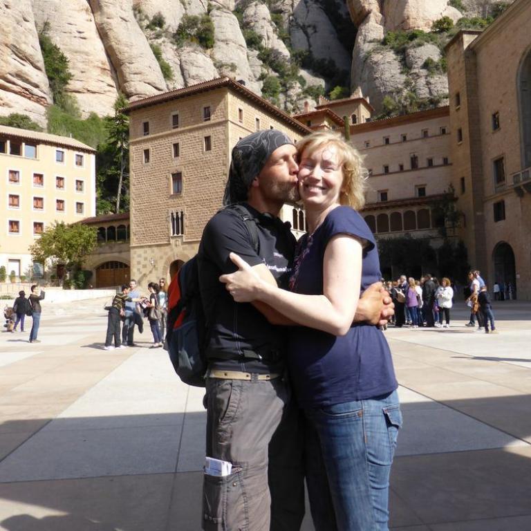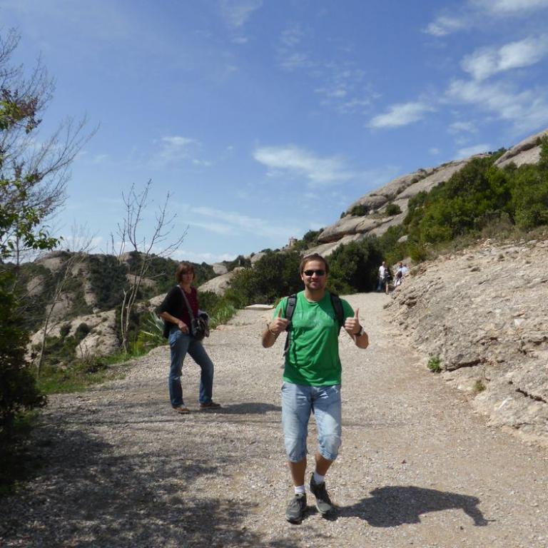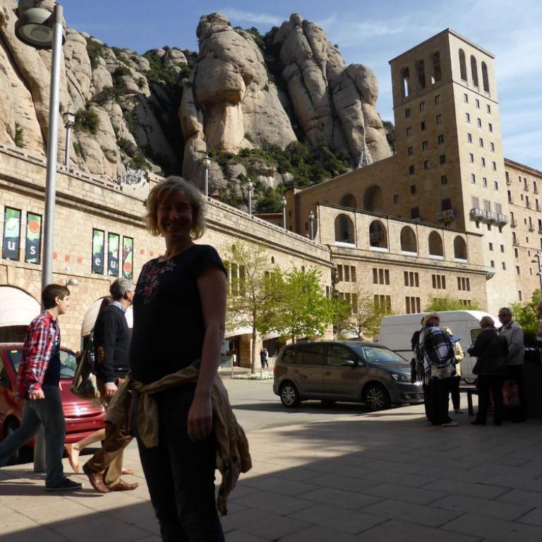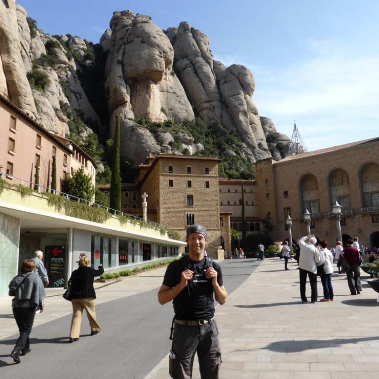Heute ließ ich den Morgenlauf aus, da eine Wanderung geplant war und wir auch früher aufstanden. Um 8 Uhr gingen wir zuerst gemütlich zum Frühstücken, bevor wir uns zur Placa de Catalunya begaben. Von hier fuhren wir mit der U-Bahn zur Placa Espanya. Hier stiegen wir in den Zug in Richtung Manresa. Nach 1 Stunde Fahrt erreichten wir die Haltestelle Aeri Montserrat. Mit einer Seilbahn aus den 30 er Jahren des vorherigen Jahrhunderts fuhren wir zum Kloster Montserrat auf ca. 1000 Höhenmetern. Das Wetter war herrliche und wir hatten eine atemberaubende Aussicht auf die umliegenden Berge und das Tal. Inmitten bizarr verklüfteten Felsen liegt malerisch das Kloster Montserrat. Zuerst besichtigten wir das Kloster, bevor wir uns mit Lobbes Bekannten uns seinem Sohn trafen.