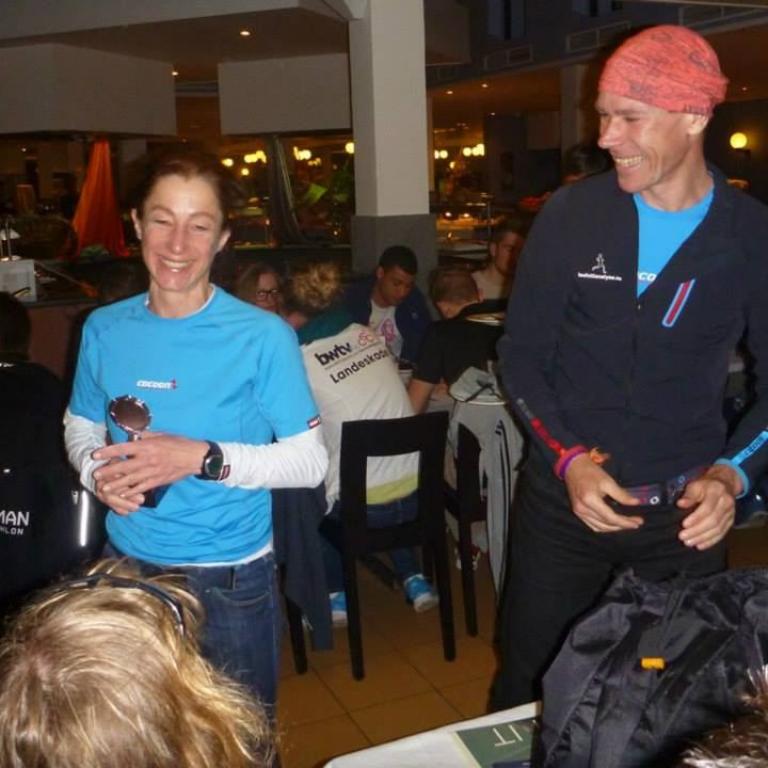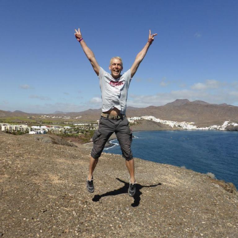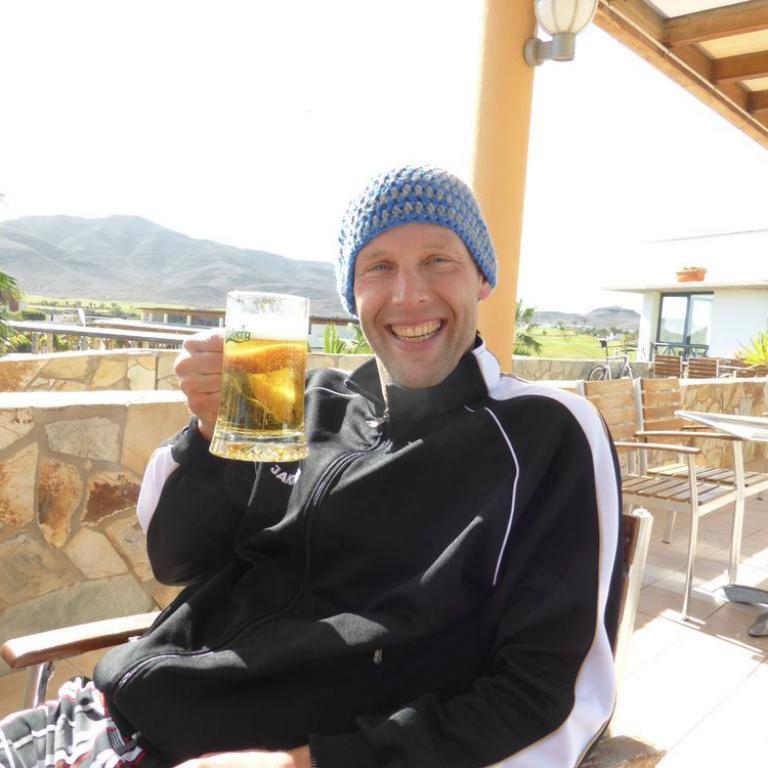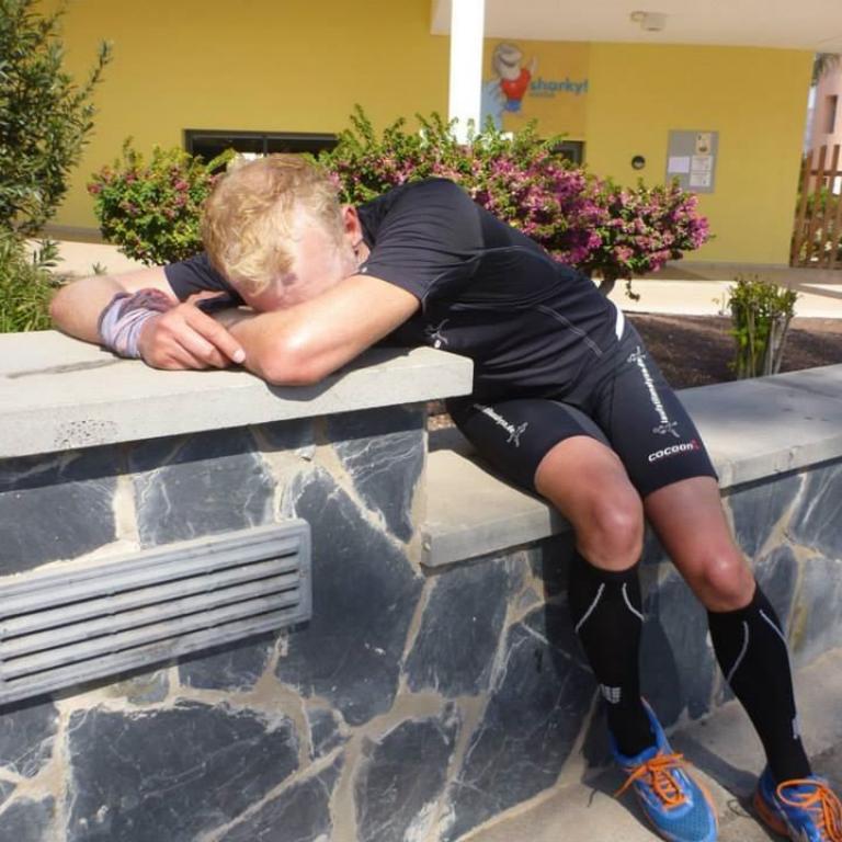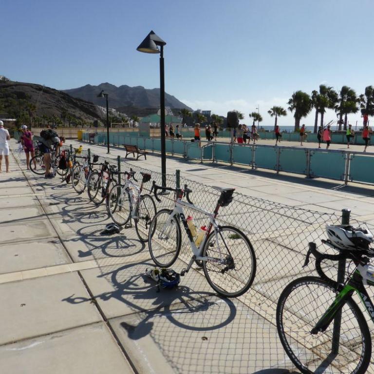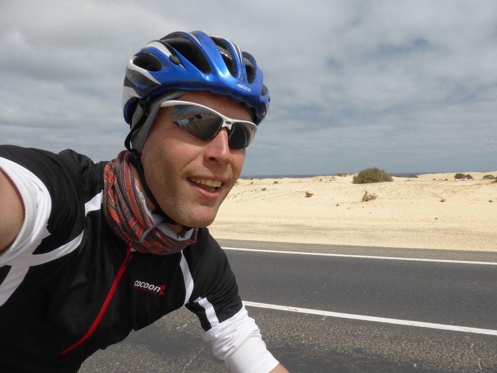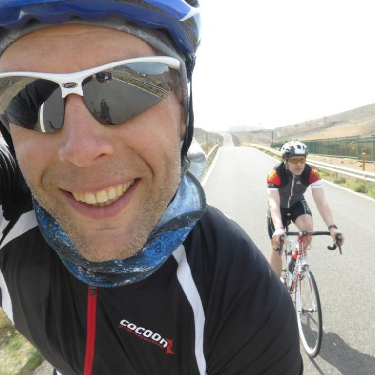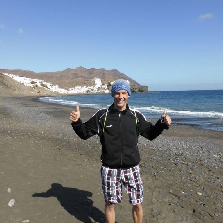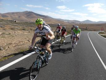 Um 7 Uhr liefen wir auf den Hügel hinter dem Hotel. Natürlich machte mir der Trail viel Spaß. Nach 45 Minuten und knapp 8 Kilometer erreichten wir wieder unser Hotel. Nach dem Frühstück holte Brigitte ihr Leihrad und wir drehten eine kleine Runde. Um dreiviertel 10 fuhren wir mit den Mädels nach Cardon, wo um viertel nach 11 der Start zum Bergsprint geplant war. 30 Sekunden vor uns starteten die Mädels und dann waren wir an der Reihe. Leider kam ich nicht in die Klickpedale rein und verlor einiges an Zeit. Als Letzter startete ich dann eine Aufholjagd auf der 110 Höhenmeter und 1 Kilometer langen Bergstrecke. Ich konnte einige von uns überholen, bevor ich auf meinen Battle Partner Christian traf. Ich konnte ihn überholen und bis kurz vor dem Ziel die Führung halten, aber dann zog er mit einer Radlänge an mir vorbei und kam dadurch vor mir ins Ziel. Trotzdem machte das Rennen wieder sehr viel Spaß. Danach fuhr ich wieder mit Brigitte langsam zurück, das sie ja in ihrer Schwangerschaft nicht zu hoch mit dem Puls kommen sollte. In Gran Tarajal suchten wir uns ein nettes Strandcafe und aßen eine Kleinigkeit. Zurück im Hotel ging ich zum Schwimmen mit den Anderen Athleten. Im Anschluss legten wir uns an den Pool und tranken gemütlich eine Dose Bier, bevor es zum Abendessen ging.