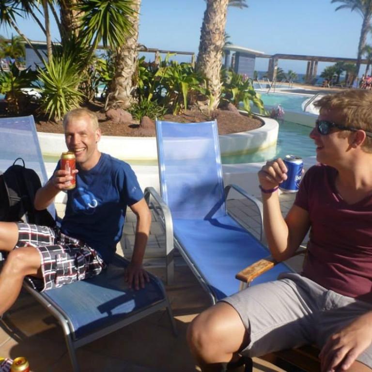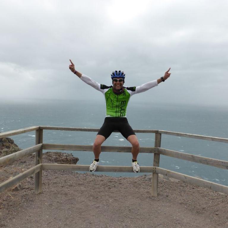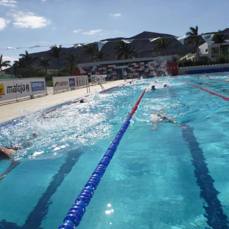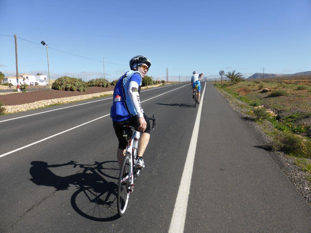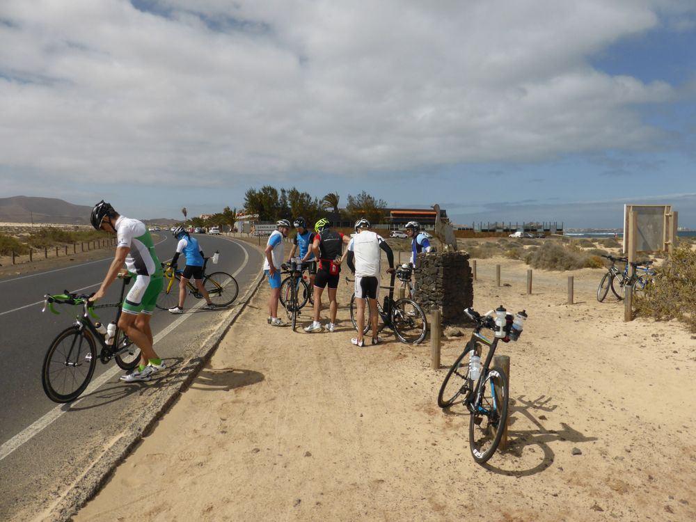 Um 7 Uhr starteten wir zum Morgenlauf. Ziel war ein 7 km entfernter Leuchtturm mit ca. 500 Höhenmetern. Ich lief mit den Schnelleren noch eine 1,5 km Hotelrunde und erst dann bogen wir Richtung Leuchtturm ab, damit wir alle ziemlich gleich oben ankommen. Auf der landschaftlich reizvollen Strecke sausten wir nach oben, wo wir eine herrliche Aussicht hatten, aber schnell wieder den Rückweg antraten. Nach 1 Stunde und 16 Minuten und 16 Kilometern erreichten wir wieder unser Hotel. Nach dem Frühstück ging es auch gleich mit dem nächsten Wettkampf weiter. Entsprechend dem Ergebnis des gestrigen Swim&Run starteten wir heute in umgekehrter Reihenfolge mit Zeitabstand beim Swim&Bike. Es mussten immer 3 Bahnen (150 m) durchschwommen werden, dann raus aus dem Wasser und einmal um den Pool laufen. Das Ganze insgesamt 10 Mal. Ich war super drauf und konnte viele überholen. Nach 28 Minuten ging ich aus dem Wasser, zog mich in der Umkleide um und schob mein Rad bis zum Hotelausgang, wo wir dann 20 Kilometer im GA2 Tempo bis zum Ziel auf einem Berg bei Tuineje radeln mussten. Leider kam ich nur 5 Meter, da ich einen Platten hatte. Scheiße dachte ich mir. Na gut dann breche ich ab, aber das ging mir doch gegen den Strich und ich wechselte den Schlauch und fuhr dann verspätet, ohne Chance doch noch los. Leider wurde es nichts mehr aus meiner Verfolgungsjagd. Nur einen Athleten konnte ich noch kurz vor dem Ziel überholen. Aber ich zeigte Kampfgeist und zog das Rennen durch. Wir radelten dann alle locker zurück zum Hotel. Nach der wohltuenden Dusche kauften wir uns eine gemütliche Halbe Bier in der Sonne. Um 17 Uhr gab es noch ein hartes Rumpfstabi Training bevor wir nach der nächsten Dusche zum Abendessen gingen.
