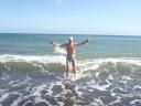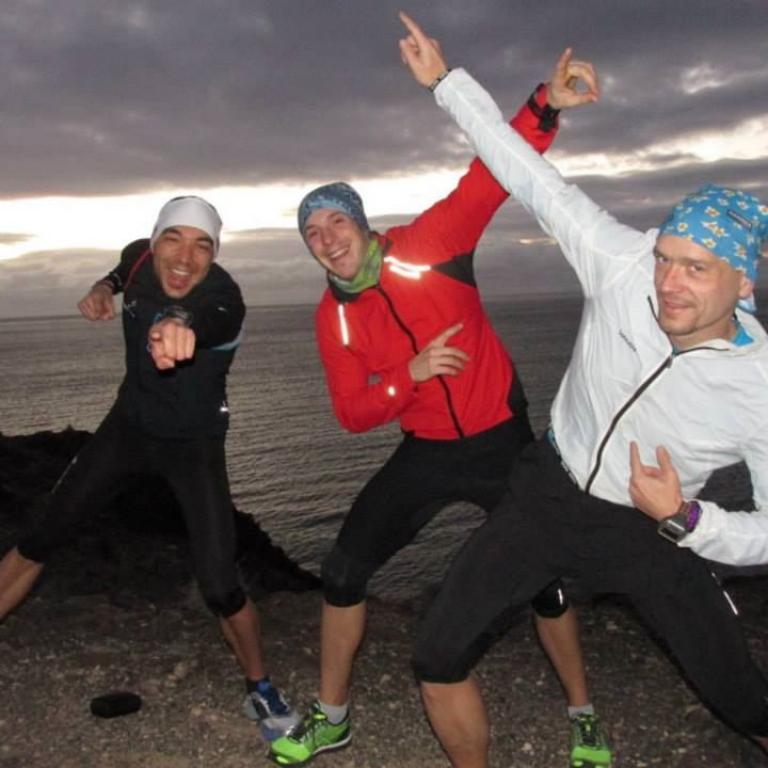 Gleich nach dem Frühstück starteten wir Richtung Süden mit Ziel Jandia. Wir hatten herrliches Wetter und es war etwas wärmer als die letzten Tage. Ich fuhr mit Ralf, Tobi, Christian und Jörg. Nach 1h 40 min und 50 Kilometer erreichten wir Jandia. Ralf und Christian fuhren noch zur nächsten Ortschaft und der Rest drehte um. Jetzt hieß es kämpfen, denn wir hatten extremen Gegenwind. Wir kamen durch Wüstenlandschaft und hatten immer wieder einen wunderbaren Blick auf das Meer. Done schloss sich uns an und wir kämpften zusammen gegen den Wind. Nach insgesamt 100 Kilometern 1500 Höhenmetern und 4 Stunden erreichten wir wieder unser Hotel. Nach einer Dusche und Regi Drink fühlte ich mich fit für den "härtesten" Wettkampf des Jahres, den Swim&Run Fuerteventura. Um halb 4 trafen wir uns am Pool, wo wir unsere Startnummern aufgemalt bekamen. Am Strand steckten wir noch die Strecke ab und schon standen 16 Athleten der Laufstilanalyse an der Startline. 3 Runden mussten wir bewältigen, ca. je Runde 200 m Schwimmen und 150 m Lauf. Nach dem Startschuss war ich gleich an dritter Stelle hinter Ralf und Done. Im Wasser liefert ich mir noch ein Duell mit Daniel, was ich aber für mich entscheiden konnte. Nach den drei Runden erreichte ich das Ziel als Gesamt Dritter. Ich konnte mit meiner Leistung sehr zufrieden sein. Beim Abendessen gab es noch eine Siegerehrung, wo Ralf super Preise für uns bereithielt. Ich gewann eine externe USB Festplatte. Coole Sache und wieder ein super gelungenes Laufstilanalyseevent.