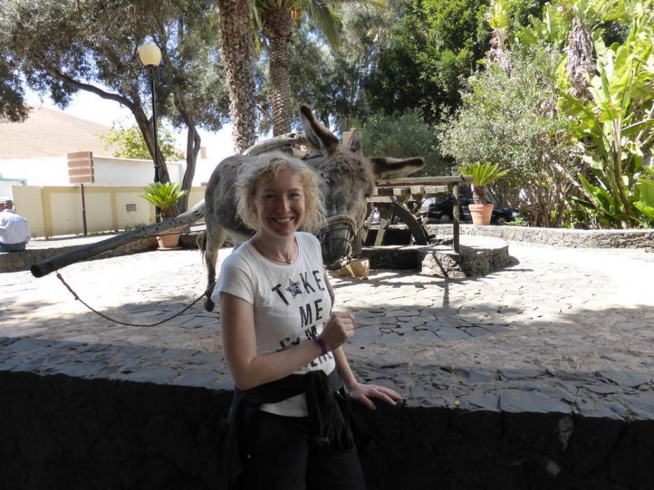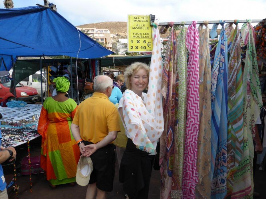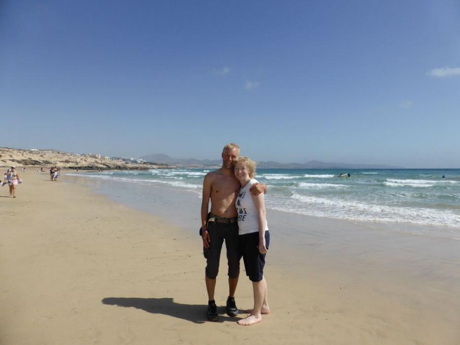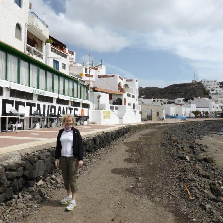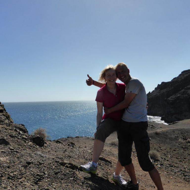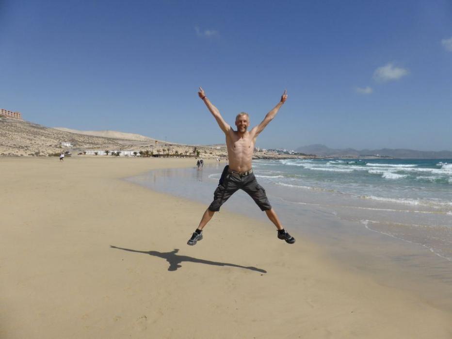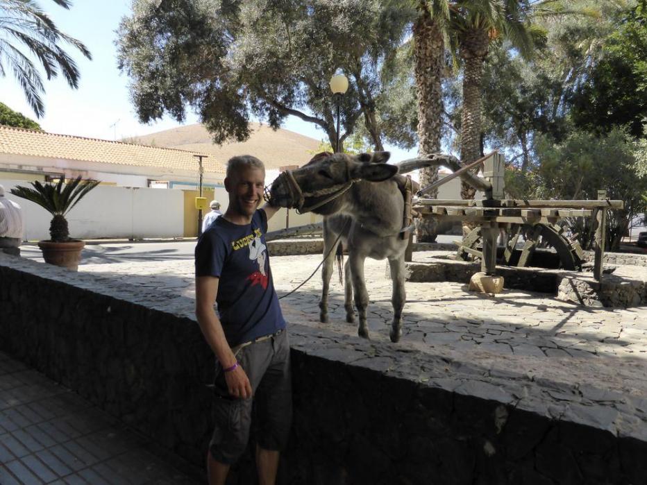 Nach dem Frühstück holten Brigitte und ich unser Mietauto, einen Opel Corsa für 43 Euro am Tag. Wir fuhren zuerst in Richtung Süden. Durch Wüstenlandschaft, Oasen und karger Landschaft, bis wir Jandia erreichten. Hier spazierten wir an der Uferpromenade, schlenderten durch den Wochenmarkt und entspannten bei einem Eiskaffee. Unser nächstes Ziel, war der ewig lange Sandstrand Playa Barca. Hier wanderten wir durch den Sand und beobachteten die Surfer. Unsere weitere Reise führte uns an die Westküste. Im kleinen Örtchen Pajara besuchten wir eine alte Kirche und einen Esel am Dorfplatz. In Betancuria kehrten wir ein und aßen leckere kanarische Kartoffeln und Baguette. Immer wieder hielten wir an herrlichen Aussichtspunkten und genossen die Weite der Insel. Als letztes erreichten wir im Norden den Touristenort Corralejo, wo wir ans Meer gingen und in den Sanddünen die Sonne genossen. Unsere Straße führte uns in Richtung Süden durch Wüstenlandschaft und Naturschutzgebiet. Über Antigua und Tuineje kamen wir um 17 Uhr wieder am Hotel an. Brigitte und ich gingen dann noch zum Laufen, bevor wir uns später mit den anderen zum Essen trafen.