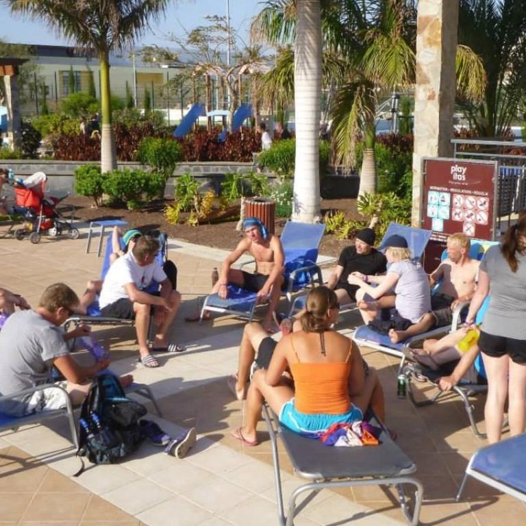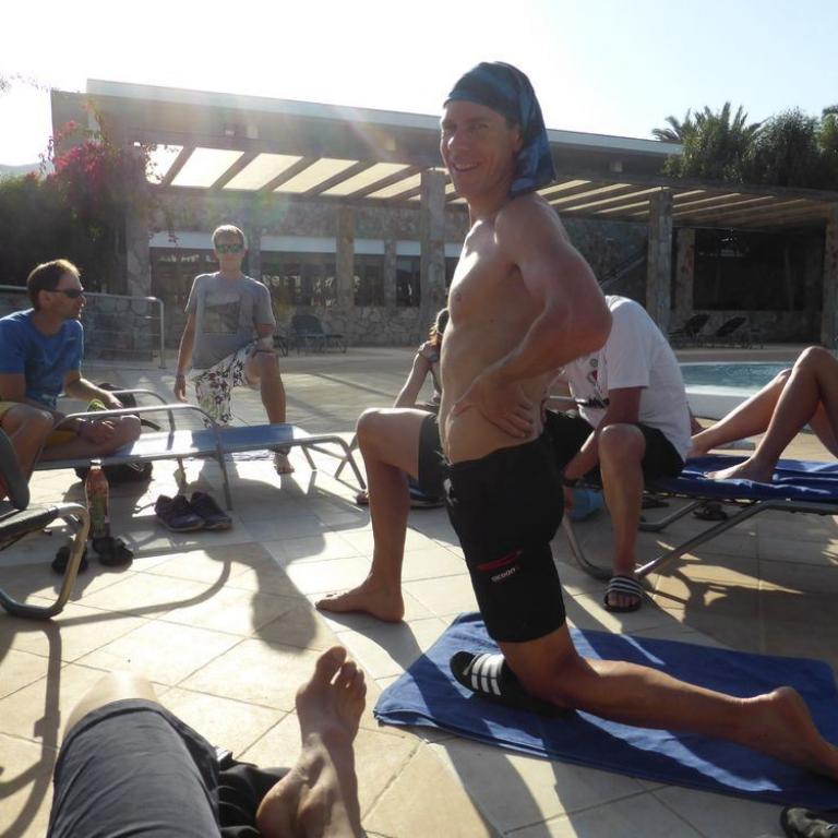 Ruhetag hieß es im Plan und deshalb bewegten wir uns erst um 8 Uhr aus den Federn. Die Beine waren noch etwas schwer vom gestrigen Training. Nach dem Frühstück machte ich es mir mit einem guten Buch auf dem Balkon in der Sonne gemütlich. Aber ganz Ruhe geht auch nicht, deshalb trafen wir uns um halb 2 an der Schwimmbahn. Zuerst machten wir Lockerung und Aufwärmübungen, bevor es ins Wasser ging. 5 km mit einigen GA2 Einheiten standen auf dem Plan. Nach 3,5 Kilometer brach ich ab, da mich langsam fröstelte. Da ich in der Nacht noch immer etwas verschleimt war, wollte ich nichts riskieren. Auch nach dieser Einheit war wieder relaxen angesagt, bevor es zum Abendessen ging.