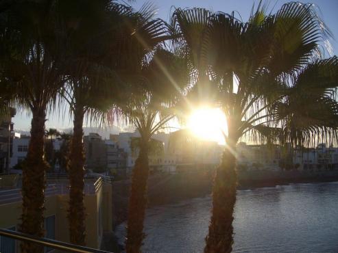 Nachmittags entschlossen wir uns mit dem Bus (Bushaltestelle vor dem Hotel) nach Maspalomas zu fahren. Für den Busfahrplan benötigt man wahrscheinlich ein 12 semestriges Studium, aber irgendwie landeten wir dennoch im richtigen Bus und erreichten auch zügig Maspalomas. Wir marschierten zum Wahrzeichen Maspalomas, dem Leuchtturm. Von dort ging es dann am Strand entlang zu den Dünen. Es war herrlich hier, der Wind wehte, aber es war nicht kühl und in den Dünen kam man sich wie in der afrikanischen Wüste vor. Später besuchten wir noch ein Einkaufszentrum, überall standen Nikoläuse und Tannenbäume, was für uns irgendwie ungewöhnlich war. Kurze Hose, Sonne, Meer und Weihnachten .............. Am Abend konnten wir wieder einen wunderschönen Sonnenuntergang von unserem Balkon aus betrachten.