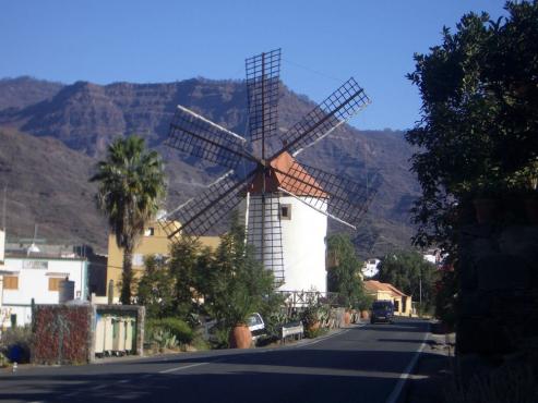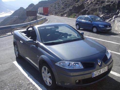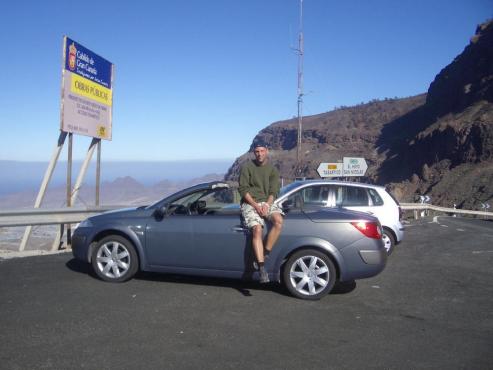 Gleich nach dem Frühstück wurden wir wieder von der Autovermietung abgeholt und nach Puerto Rico gefahren. Dort nahmen wir unser Renault Megan Cabrio in Empfang. Für 100 Euro am Tag durften wir Cabrio fahren. Wir schlängelten uns auf der Steilküste nach Puerto Mogan. Dort bogen wir ins Landesinnere ab in Richtung Mogan. Von dort ging es dann nach Westen bis wir in La Aldea de San Nicolas ankamen, das als Landwirtschaftszentrum gilt, denn man verfügt über genügend Wasser, das in Staubecken östlich des Ortes gespeichert wird.
