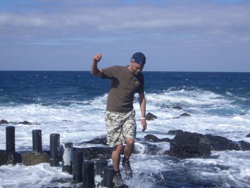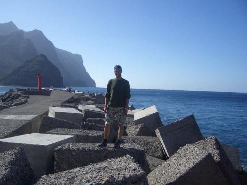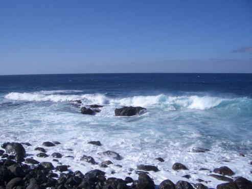 Die abenteuerliche Reise brachte uns nach Mittag in die Ortschaft Agaete, von wo aus wir an die Küste nach Puerto de las Nieves fuhren. Dort schlenderten wir durch die schönen Gassen des Fischerortes. Wir besichtigten die Kapelle Ermita de las Nieves und spazierten den Strand entlang. Der Wind ging ziemlich heftig, so das die Wellen ans Ufer peitschten. Das Wahrzeichen ist der Dedo de Dios "Der Finger Gottes", es ist eine von Wind und Wetter geschliffene Felsnadel, die wie ein knochiger Finger steil vor dem Kliff aus dem Meer ragt. Am 29. November 2005 knickte der Tropensturm "Delta" den Finger ab. Somit konnten wir keinen Finger mehr sehen. Wir aßen dann in einem kleinem Restaurant zu Mittag. Es gab leckeren Fisch und Garnelen.