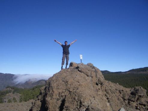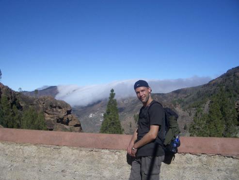 Der Weg schraubte sich doch relativ steil hoch zu Roque Nublo. Nach ca. einer halben Stunde erreichten wir das Hochplateau. Wir hatten eine herrliche Aussicht auf die bizarre Bergwelt und dem gigantischem Felsen Roque Nublo. Wir machten hier Rast und genossen die Sonne und Aussicht. Wir gingen den gleichen Weg wieder zurück, bis wir die Hauptstraße erreichten. Von dort ging es zuerst auf der Straße bergab, bis wir einen Trampelpfad nach Ayacata nehmen konnten. Nach insgesamt 4 Stunden reine Wanderung erreichten wir die kleine Ortschaft Ayacata, wo wir uns gemütlich in ein Restaurant setzten und eine Schinkenplatte aßen und die Sonnenstrahlen genossen.
