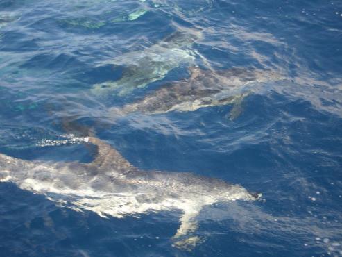 Am Hafen buchten wir dann eine 3 stündige Dolphin Tour. Wir hatten noch etwas Zeit und genossen die Aussicht aufs Meer. Um 11 Uhr legte das Boot ab. Uns wurde garantiert, das wir Delfine sehen würden, ansonsten könnten wir umsonst mit dem nächsten Boot nochmals rausfahren. Nach ca. 1 Stunde Fahrt machte uns unser Kapitän auf eine Gruppe Delfine aufmerksam. Die Tümmler schwommen ganz nah an unser Boot heran und machten die verschiedensten Sprünge. Es war echt schön den Tieren zuzuschauen. Nach ca. einer halben Stunde und unzähligen Fotos machten wir uns wieder auf den Rückweg zum Hafen von Puerto Rico.
