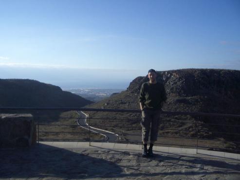 Wir sausten die Straßen hoch ins Gebirge. Kurvenreiche Strecken erwartete uns. Absolut spektakulär war die Steilküstenstraße nördlich von San Nicolas in Richtung Agaete. Mehrere hundert Meter fallen die Felsen ins Meer ab, unübersichtliche Serpentinen winden sich die Flanken der Berge hinauf und hinunter. Die Straße über die "grünen Berge" stammt aus den 1960er Jahren. Beeindruckend war der Mirador del Balcon. Wir konnten von der Plattform aus sogar den Pico de Teide auf Teneriffa (3718 m) erkennen.