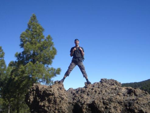 Links vorbei an einem Freizeitcamp gelangten wir dann zum Stausee Embalsa de los Hornos. Bis hier her brauchten wir vom Ausgangspunkt aus ca. 2 1/2 Stunden. Wir machten erst einmal Brotzeit und genossen die herrliche Aussicht auf den Roque Nublo und den Teide auf Teneriffa. Weiter führte uns der Weg zur Aussichtsterrasse Cruz de Juan Pèrez, von wo aus die Straße nach Ayacata führt. Nach ein paar Metern zweigt ein gut Beschilderter Weg links zum Roque Nublo ab.