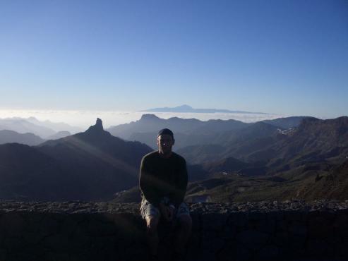Zum Abschluß fuhren wir noch auf den Pico de las Nieves (1949 m), dem höchsten Berg Gran Canarias, genannt "die Schneespitze". Zuerst fuhren wir in Wolken, aber je höher wir den Berg hinauf kamen, desto mehr kam der blaue Himmel zum Vorschein und die Wolken waren unter uns. Da es schon Spätnachmittag war stand die Sonne sehr tief und wir hatten einen herrlichen Blick auf den Roque Nublo ("Wolkenfelsen") und die gesamte Insel. Leider war es schon sehr kühl hier auf 1949 Metern. Wir genossen die Aussicht und auf der Fahrt zurück den herrlichen Sonnenuntergang.