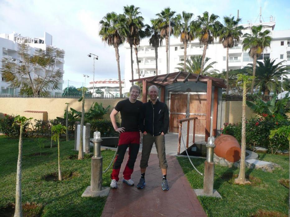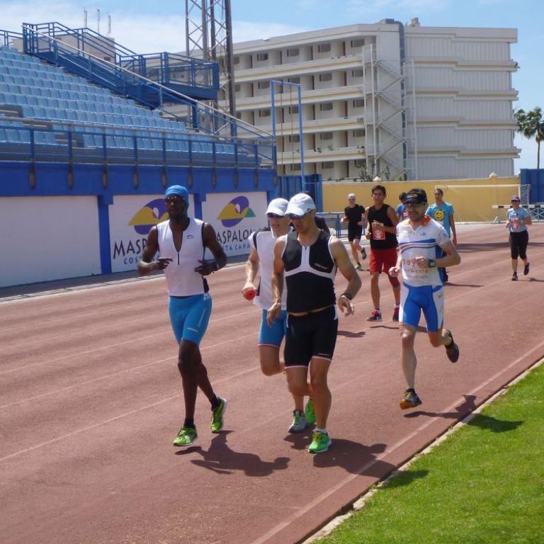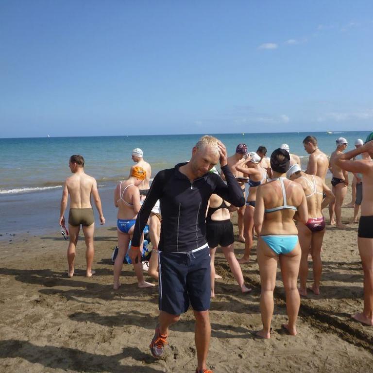 Die Nacht war zum ersten Mal seit Tagen ruhig und ohne Husten, so dass ich entspannt mein Frühstück genießen konnte. Leider hatte Brigitte ihre Stimme verloren und ihr Hals schmerzte. Um viertel nach 9 hatte ich wieder einen Termin beim Arzt zur alltäglichen Spritze. Trotzdem schaffte ich es bis um 10 Uhr bei Ralfs Radgruppe zu starten. Wir fuhren in ziemlich zügigem Tempo bis nach Fataga. Ich fühlte mich sehr gut, so dass ich an den Radprofis dran bleiben konnte. Ab Fataga war ein Bergzeitfahren über 700 Höhenmeter und 4,5 Kilometer angesagt. Ich fuhr außer Konkurrenz mit und schaffte die Strecke in 25 min. Im Anschluss liefen wir noch auf der Bahn 5 km, wo ich mich trotz meiner Krankheitsvorgeschichte ziemlich gut fühlte und die Strecke in 21 min und 53 Sekunden zurücklegen konnte. Auch mein Puls war besser als erwartet. Nur sporadisch hatte ich noch einen Hustenreiz. 2 Stunden konnte ich mich erholen, bevor es mit den anderen Laufstilanalyseathleten zum Strand von Playa del Ingles ging. Kurzfristig, dank meiner schnellen Genesung, entschloss ich mich am härtesten Wettkampf des Jahres teilzunehmen. Dem Swim&Run Gran Canaria. Wir waren fast 20 Teilnehmer die sich in die Fluten stürzten. 3 Runden mit ca. 300 Meter im Wasser und 150 Meter an Land waren zu bewältigen. Im Wasser hatte ich ganz schön mit den Wellen zu kämpfen, aber ich biss mich durch. Lauftechnisch konnte ich wieder Boden gut machen, so dass ich mit einem 11. Platz von 14. in der Herrenwertung zufrieden geben konnte. Trotzdem war ich überrascht was nach 5 Tagen Krankheit noch in mir steckte. Am Abend gab es noch eine klasse Siegerehrung, die Ralf mit Ironie und Spaß abhielt. Jeder bekam einen Preis und wurde geehrt. Ein gelungener Tag ging zu Ende. Hoffentlich hält meine Gesundheit her und hoffentlich wird es bei Brigitte nicht schlimmer.