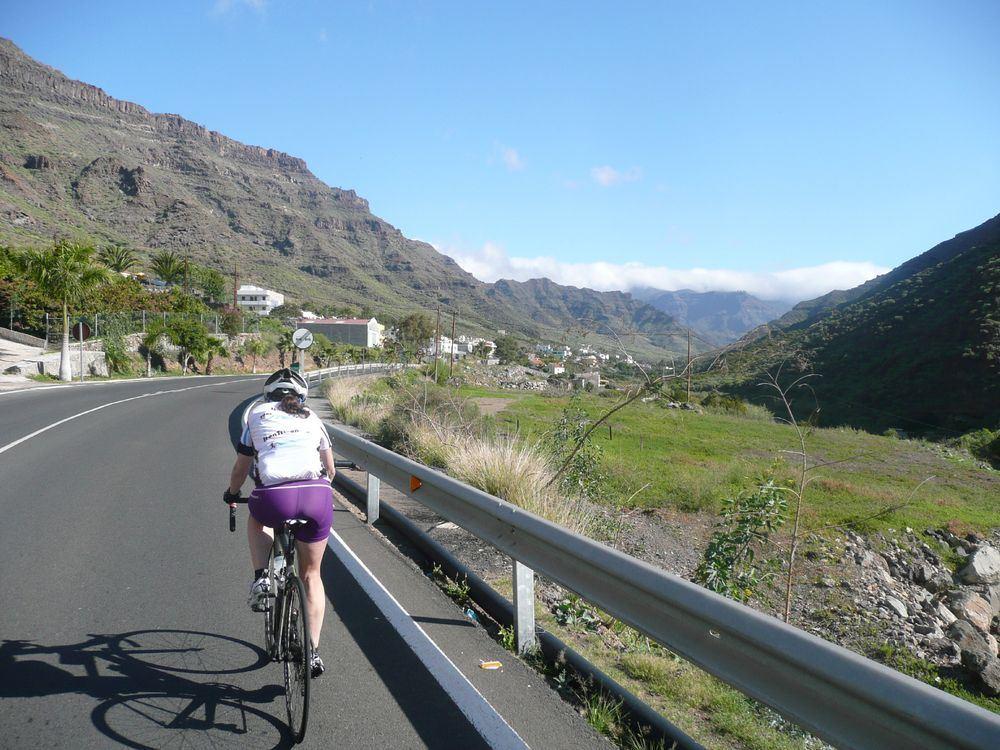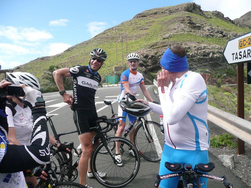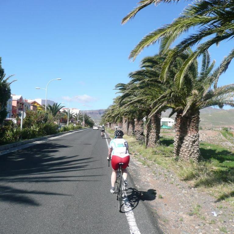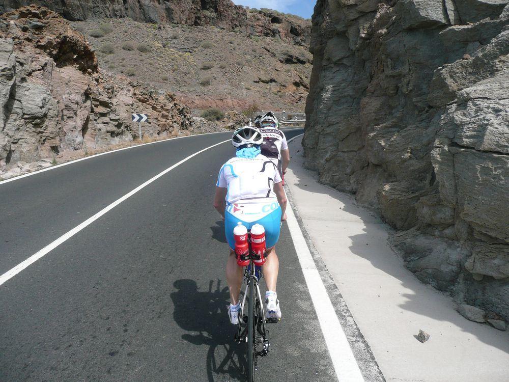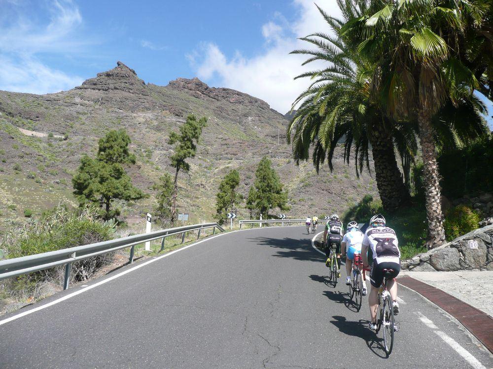 Eigentlich hatte ich nicht erwartet am Morgenlauf teil zu nehmen, aber es ging besser als erwartet. 10 km ohne größere Hustenanfälle und einem sehr gutem Puls. Selbst bei einem 4:30 Schnitt kam ich nicht über 140 Schläge hinaus. Nach dem Frühstück entschloss ich, mit Sabine, Gabi, Eva, Christian, Roland, Done, Hans und natürlich Brigitte eine Radausfahrt zu wagen. Nach mehreren Startschwierigkeiten wie Reifenpanne, Einstellprobleme der Leihräder und Kettenausspringen konnten wir dann doch 65 km mit 1200 Höhenmetern durch das herrliche kanarische Hinterland fahren. Brigitte schaffte ihre überhaupt erste Rennradtour mit Links und ich konnte ganz stolz auf meine Freundin sein. Am Nachmittag gab es kühle nichtalkoholische Getränke an der Poolbar, die dank All Inclusive umsonst waren. Leider wurde mein Schnupfen wieder stärker und so konnte ich zwar das Stretchingprogramm noch absolvieren, aber den anschließenden Abendlauf musste ich sausen lassen. Mit Schniefnase ging es noch zum Abendessen, wo uns Ralf auch die Radstrecke für Morgen erklärte, bevor ich mich um halb 9 Uhr !!!! schlafen legte.