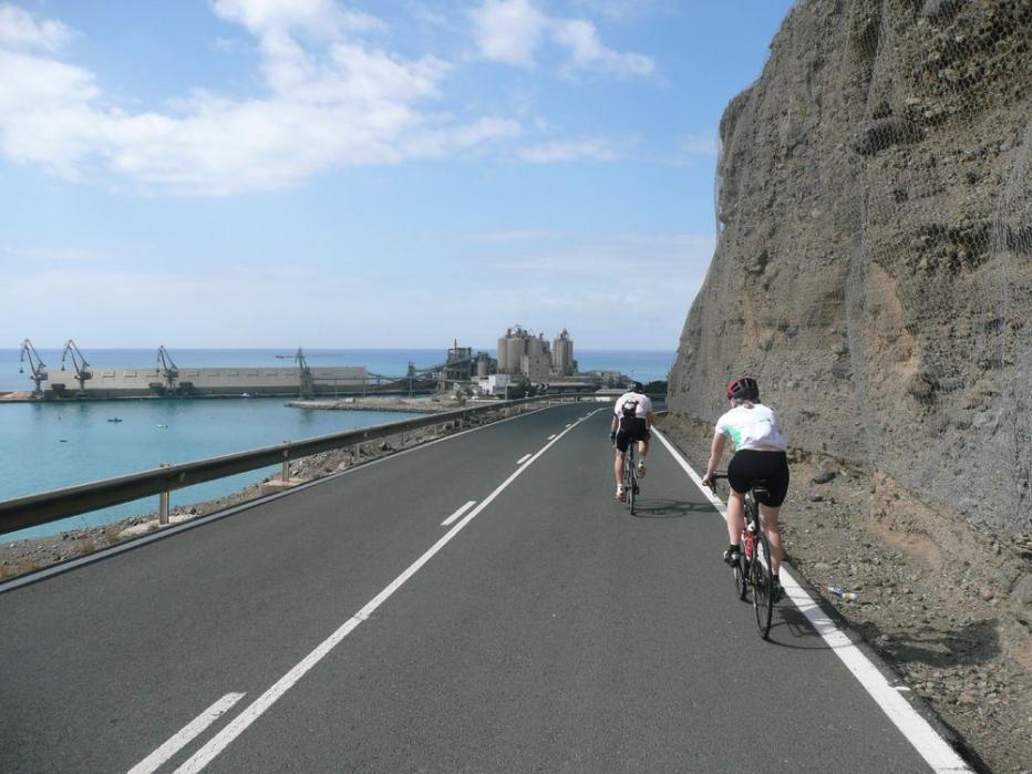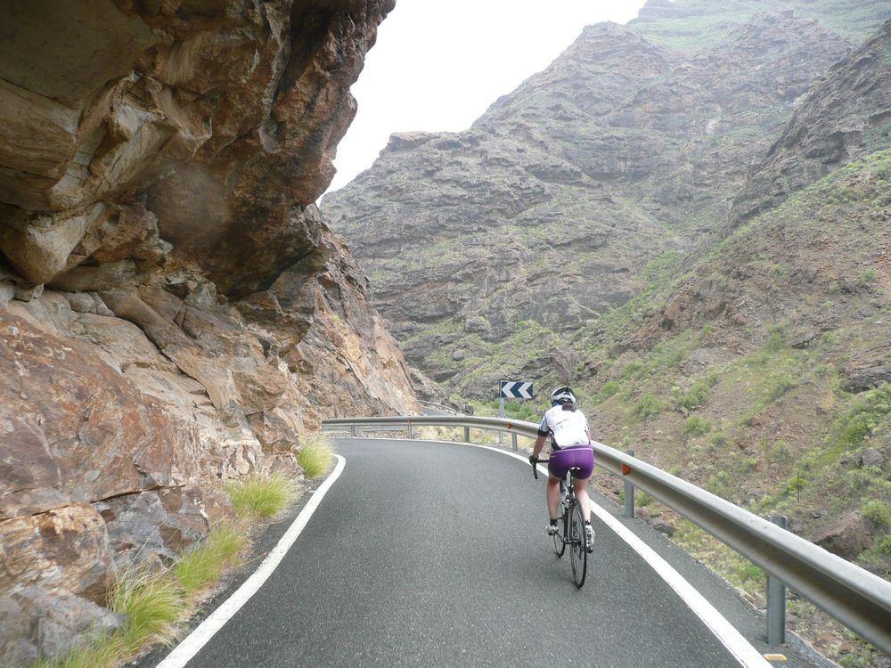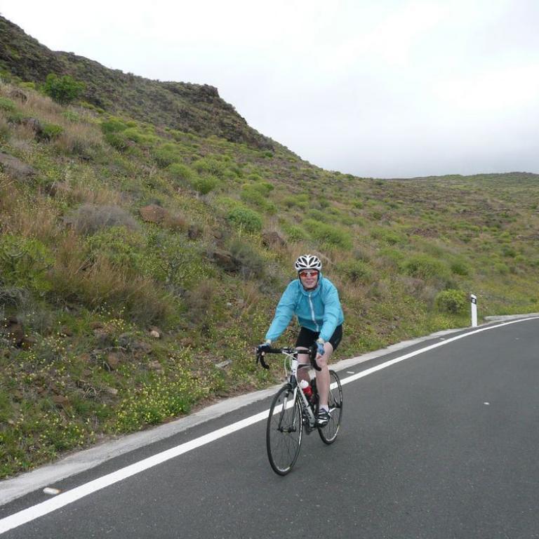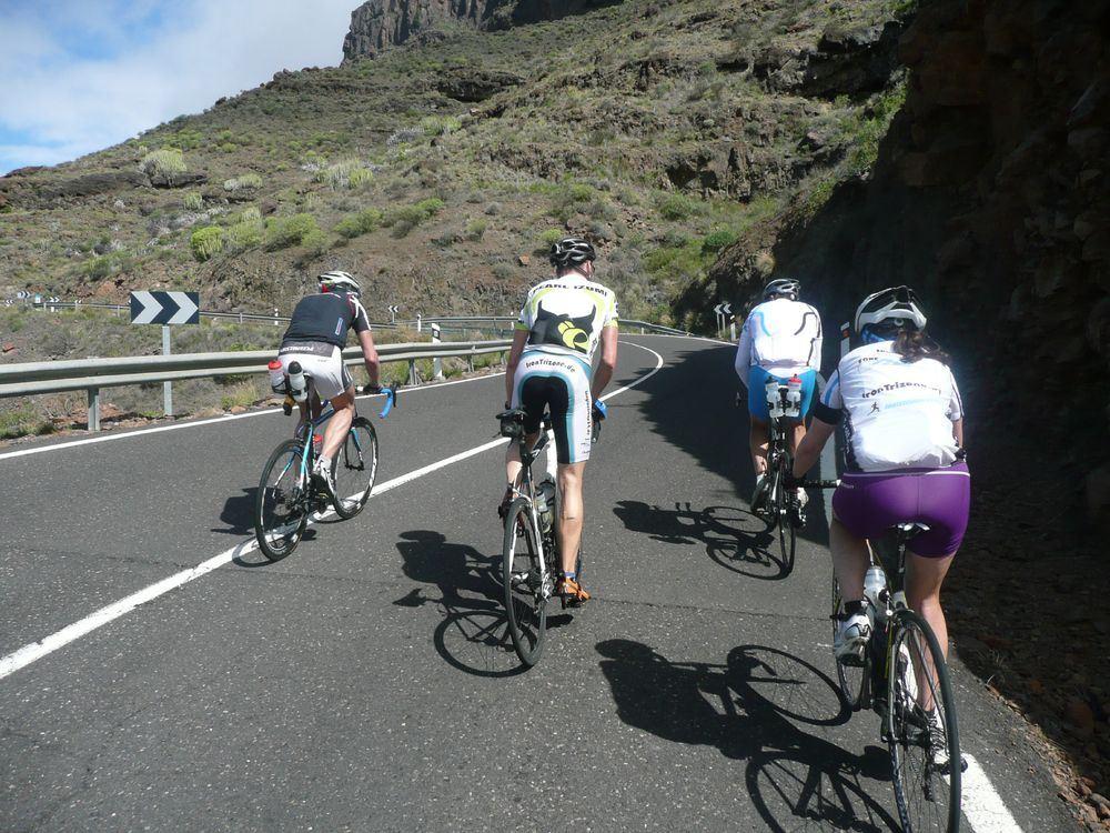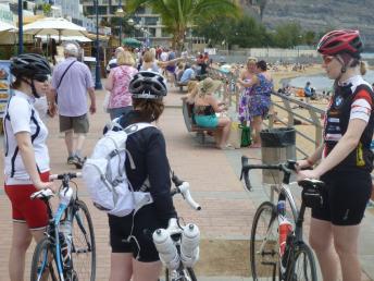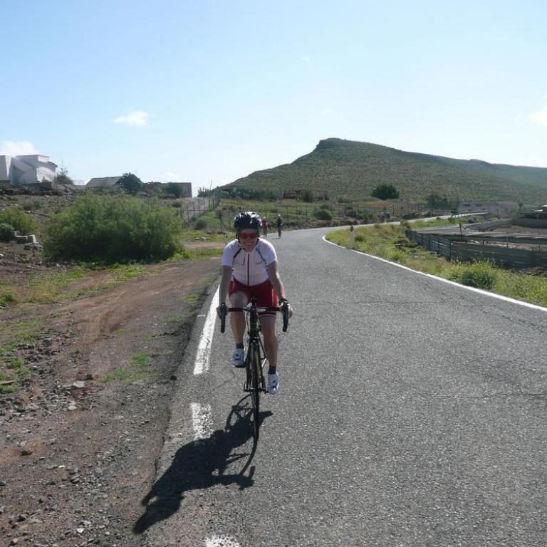 Eigentlich hatte ich nicht erwartet am Morgenlauf teil zu nehmen, aber es ging besser als erwartet. 10 km ohne größere Hustenanfälle und einem sehr gutem Puls. Selbst bei einem 4:30 Schnitt kam ich nicht über 140 Schläge hinaus. Nach dem Frühstück entschloss ich, mit Sabine, Gabi, Eva, Christian, Roland, Done, Hans und natürlich Brigitte eine Radausfahrt zu wagen. Nach mehreren Startschwierigkeiten wie Reifenpanne, Einstellprobleme der Leihräder und Kettenausspringen konnten wir dann doch 65 km mit 1200 Höhenmetern durch das herrliche kanarische Hinterland fahren. Brigitte schaffte ihre überhaupt erste Rennradtour mit Links und ich konnte ganz stolz auf meine Freundin sein. Am Nachmittag gab es kühle nichtalkoholische Getränke an der Poolbar, die dank All Inclusive umsonst waren. Leider wurde mein Schnupfen wieder stärker und so konnte ich zwar das Stretchingprogramm noch absolvieren, aber den anschließenden Abendlauf musste ich sausen lassen. Mit Schniefnase ging es noch zum Abendessen, wo uns Ralf auch die Radstrecke für Morgen erklärte, bevor ich mich um halb 9 Uhr !!!! schlafen legte.