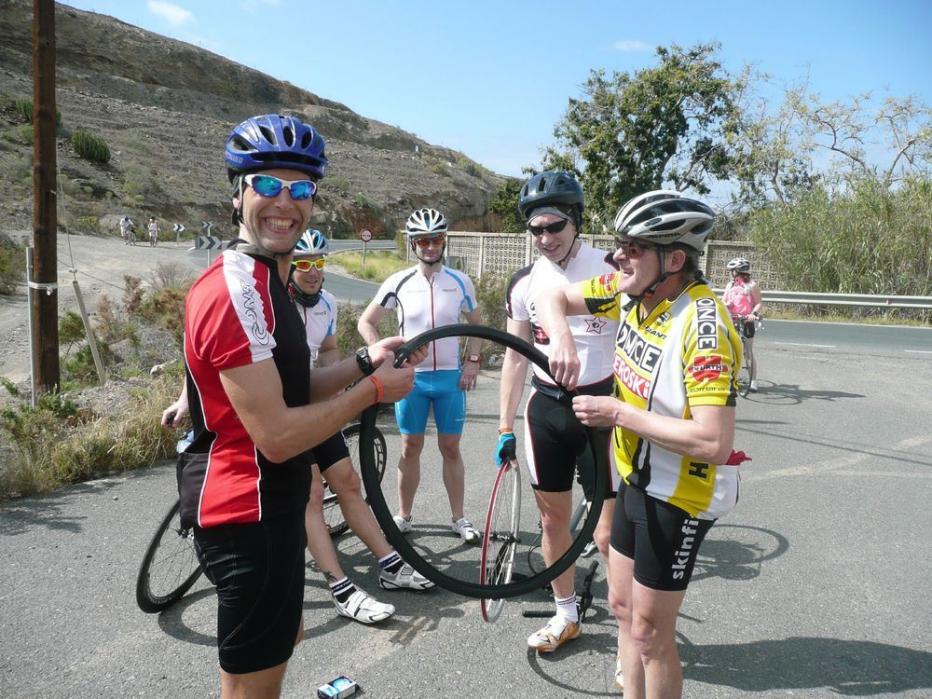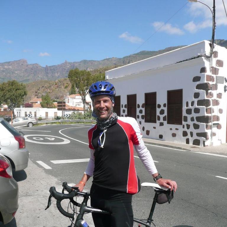 Nach dem Frühstück trafen wir uns wieder um 10 Uhr vor dem Hotel. Gemeinsam starteten wir zur 2. Radausfahrt. Leider hatte ich nach ca. 10 km wieder einen Platten. Diesmal fand ich dir Ursache. Ein Glassplitter im Mantel, der sicherlich auch für den Gestrigen Platten zuständig war. Mit Hilfe von Done wechselte ich den Schlauch und weiter konnte es gehen. Die verschiedenen Gruppen fanden sich während der Fahrt zusammen. Ich schloss mich Roland, Armin, Gabi, Alex und Done an. Vom Prinzip fuhren alle Gruppen die gleiche Strecke. Zuerst nach Puerto Mogan und dann in die Berge. Wir verfehlten leider eine Abzweigung so dass wir umsonst ca. 500 Höhenmeter und mehrere Kilometer fuhren, bevor wir unseren Fehler erkannten, und wieder umkehrten. Aber der Trainingseffekt war trotzdem gegeben. Ich fühlte mich lange Zeit fit und konnte mit frischen Füßen den Berg hochpowern. Nach ca. 80 km, aber schon nach dem höchsten Punkt, ging mir rapide der Saft aus und ich hatte Mühe die letzten 20 Kilometer nach Hause zu schaffen. Insgesamt waren wir 100 Kilometer, 2100 Höhenmeter und über 5 Stunden unterwegs. Brigitte fuhr ja auch heute wieder fleißig mit und kam mit ihrer Gruppe auf 85 Kilometer und über 1000 Höhenmeter. Am Abend joggte ich mit Brigitte noch knapp 5 Kilometer, aber mit mega schweren Füßen, bevor wir verdient zum Abendessen gingen.
