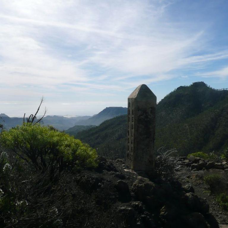 Auch heute war ich wieder nicht fit. Ich hatte Halsschmerzen und Hustenanfälle, so dass ich wieder den Morgenlauf sausen lassen musste. Nach dem Frühstück bekamen wir unser bestelltes Auto, einen Fiat Panda, geliefert. Brigitte und ich fuhren zuerst in Richtung San Bartolome und dann bis nach Cruz Grande, wo wir unser Auto parkten und der Start unserer Tour auf dem Königsweg war. Vom Pass Cruz Grande geht man auf der Straße ein paar Schritte in Richtung San Bartolomè zurück und biegt links in eine aufwärts führende Piste ein. Von dort schraubt sich der sorgfältig angelegte Serpentinenweg längs einer senkrecht aufragenden Steilwand zum Hochplateau empor. Die ganze Zeit hat man eine herrliche Aussicht in den Kessel von San Barolomè und später ins Tal von La Plata und dem Stausee Chira. Wir mussten dann die Hochebene in Richtung Kiefernwald queren. Der Anstieg dauerte eine gute Stunde. Nach ein paar hundert Metern auf der Straße biegt man links ein in den Kiefernwald. Der Weg führte uns in den Kiefernwald hinein. Nach 15 Minuten erreichten wir ein Holzkreuz.