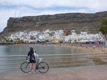 Um 7 Uhr liefen wir zum Strand und dort barfuß dem Sonnenaufgang entgegen. Nach dem Frühstück startete ich alleine in Richtung Puerto Mogan. Ich bog dann nach Soria in die Berge ab. Ich musste 1000 Höhenmeter am Stück über steile Serpentinen nach oben radeln. Die Sonne brannte erbarmungslos auf mich nieder. Nach knapp über 2 Stunden stand ich dann am höchsten Punkt. Von hier sauste ich über die "Grüne Hölle" bis nach Mogan hinunter und von Puerto Mogan über die Küste zurück. Ich war insgesamt 4 Stunden 85 Kilometer und 1700 Höhenmeter unterwegs. Ziemlich kaputt legte ich mich dann mit Brigitte an den Pool. Später brachten dann Hans und ich unsere Leihräder wieder zurück. Nach dem Abendessen trafen wir uns alle bei Done zur Trainingslagerabschlussfeier. Erst nach Mitternacht kamen wir mit einigen Bier zu viel ins Bett. Ein gelungener Ausklang am Ende unseres Urlaubes.
