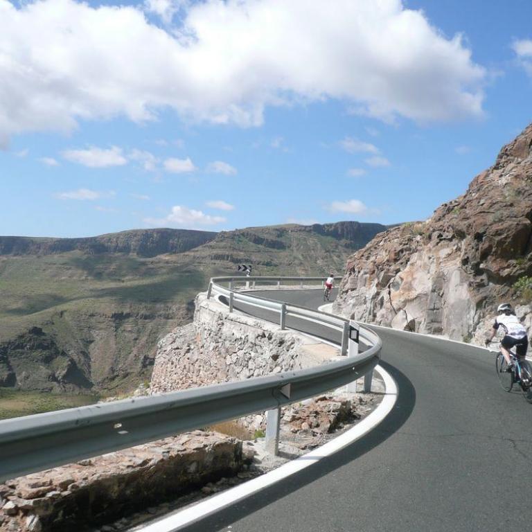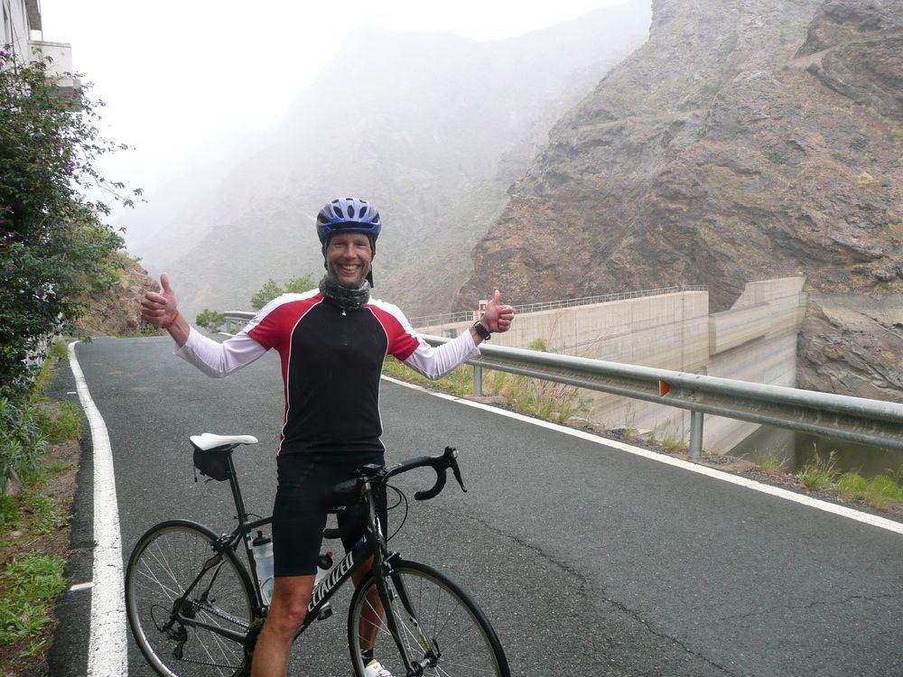 Schon um halb 8 gingen wir zum Frühstück, damit wir zeitig ins Tal der Tränen aufbrechen konnten. Mit mir waren Gabi, Christoph und Done am Start. Der Rest fuhr eine Stunde später los. Wir fuhren bis nach Mogan und dann in Richtung San Nicolas, wo uns beim Anstieg Ralf und Marco einholten. Kurz danach kamen noch Tobi und Martin. Leider fing es in San Nicolas zu regnen an, aber trotzdem war es noch relativ warm. Wir fuhren eine kleine Straße in Richtung Artenara. Leider war es ziemlich bewölkt, aber trotzdem zeigte sich das Tal von seiner spektakulären Seite. Fast 3 Stunden kämpften wir uns ununterbrochen nach oben, bis wir Artenara bei ziemlich kühlen Temperaturen erreichten und dort eine Pause machten. Hier kamen auch wieder Eva und Dani mit dem "Versorgungsjeep", die uns dann die nächsten Stunden bis zum Hotel zurück begleiteten. Leider konnten wir unsere Strecke nicht so wie geplant fahren, da eine Rallye stattfand und teilweise Straßen gesperrt waren. Somit mussten wir uns nochmals ca. 500 Höhenmeter eine 12 % ige Steigung hoch kämpfen. Bis wir in Richtung Ayacata und zurück fahren konnten, kamen noch ein paar Höhenmeter hinzu. Insgesamt waren wir 150 Kilometer, 3700 Höhenmeter und 8 Stunden 15 Minuten reine Fahrtzeit unterwegs. Am Abend war ich ganz schön kaputt und fiel nach dem Abendessen erschöpft ins Bett.