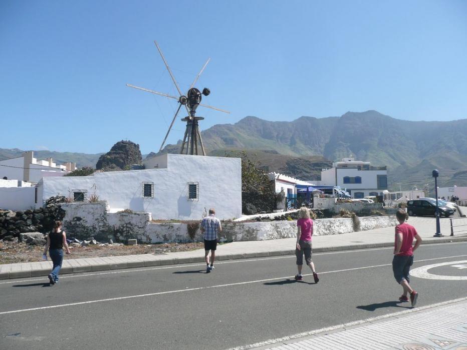 Nach dem Frühstück holte ich meine letzte Spritze ab und bezahlte 455 Euro. Hoffentlich bleibe ich auch gesund. Um 10 Uhr starteten Brigitte, Hans, Roland, Sabine und ich zur Inselrundfahrt mit dem Leihauto. Spektakulär war die Steilküste im Westen der Insel. Entspannung gab es beim Mittagessen in Puerto de las Nieves, Geschichtliches in Cenobio de Valeron, ein Höhlenensemble aus 298 Kammern und die Städtchen Arucas und Teror, wo wir durch die Gassen schlenderten und Kaffee und leckeres Gebäck genossen. Über die Ostküste fuhren wir am Spätnachmittag wieder ins Hotel zurück, wo ich gleich zu einem 10 Kilometer Lauf startete. Ich war ganz zufrieden, da mein Puls bei einem 4:45 Schnitt nicht über 140 hinaus ging. Beim Abendessen wurde noch die Mega Tour ins Tal der Tränen für den nächsten Tag besprochen.