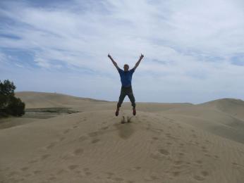 Die Nacht war Horror, nur Hustenanfälle bis knapp zur Erstickung. Um 9 Uhr kroch ich wie gerädert aus dem Bett. Mit letzter Kraft ging es wie schon die letzten Tage zum Frühstück und im Anschluss wieder zurück ins Bett. Nachmittag wurde es mir im Bett zu dumm, deshalb entschlossen Brigitte und ich uns zu einer kleinen Wanderung in den Dünen von Maspalomas. Die Dünen im Südosten von Maspalomas erstrecken sich über eine Länge von sechs und eine Breite von ein bis zwei Kilometern. Der Sand besteht hier nicht aus Gesteinstrümmern, sondern überwiegend aus von der Brandung angeschwemmtem und zerriebenem Korallen- und Muschelkalk durch die Calima verwehter Sand aus der Sahara ist nicht der eigentliche Ursprung. Am Leuchtturm findet sich eine Oase ("La Charca"), in der zahlreiche Wasservögel brüten. Sie steht ebenso wie die Dünen seit 1987 unter Naturschutz. Nach gemütlichen 3 Stunden Wanderung erreichten wir wieder unser Hotel. Kurzzeitig dachte ich mir, dass der Husten am Abklingen wäre, aber das war leider nur kurzzeitig. Die Nacht war wieder eine Katastrophe. Ich konnte vor lauter Husten kaum die Augen zumachen.