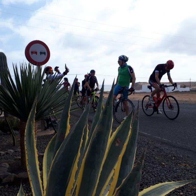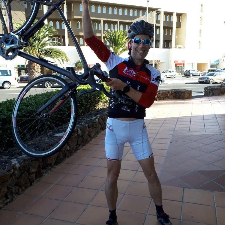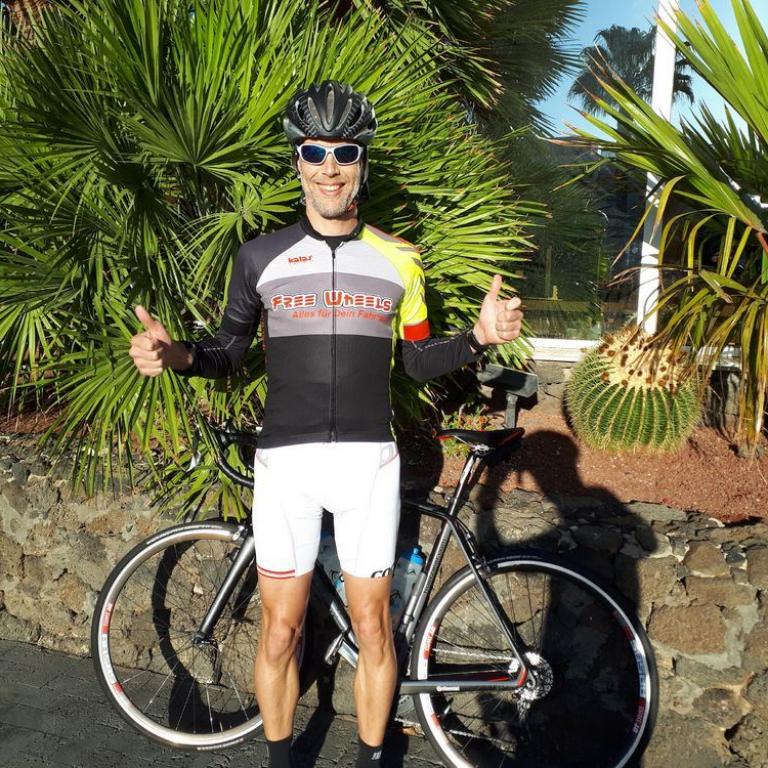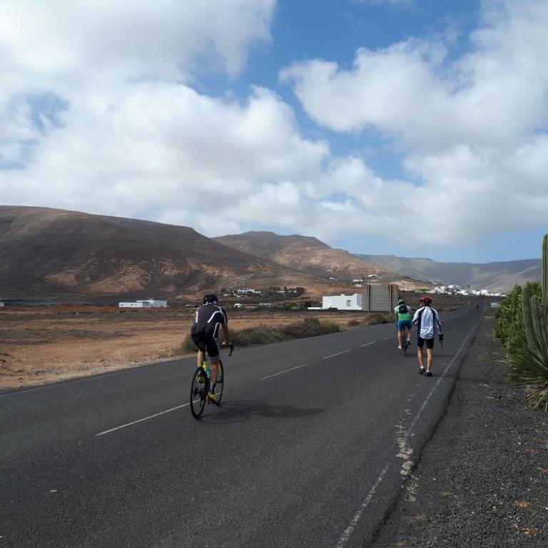 Es fiel mir schon hart, mich von meinen Zwergen und Brigitte zu verabschieden. Um 6 Uhr holte ich dann Brigittes Bruder Hans in Leiblfing ab und zusammen fuhren wir zum Flughafenparkplatz P41. Nach dem Koffer Check In und passieren der Sicherheitskontrolle, genehmigten wir uns einen kleinen Snack, wo wir auch die anderen tRi.P.coaching Athleten trafen. Nach dem 4 stündigen Flug erreichten wir auch schon die karge Insel Lanzarote. Das Wetter sah für die ganze Woche vielversprechend aus. Sonne pur und angenehme 25 Grad. Mit dem Bus fuhren wir zu unserem 4 Sterne Hotel Occidental Lanzarote Mar in Costa Teguise. Unser Zimmer war groß und sauber und vom Balkon konnten wir einen Blick auf das Meer genießen. Hans, Flo und ich holten unsere Leihräder vom Fahrradverleih Huerzeler direkt neben dem Hotel. Gegen einen Aufpreis, der zuerst nicht erwähnt wurde, können wir die Räder dort über Nacht deponieren und bekommen täglich Verpflegung (Äpfel, Bananen und Sandwich). Auch für den Helm wurde ein Aufpreis verlangt, was bisher bei keinem Verleiher der Fall war. Dafür bekamen wir top Räder von Centurion und Cube. Natürlich drehten wir noch eine kleine Runde damit, bevor wir zum Abendessen gingen. Am Buffet gab es alles was das Herz begehrte. Klar versuchte ich so gesund wie möglich zu essen, viel Salat, Obst, aber auch Kohlehydrate in Form von Kartoffeln und Nudeln. Später gab es noch das Briefing von Ralf zum nächsten Trainingstag und einen Ausblick über die Trainingswoche. Ralf hatte sich wieder viele Gedanken gemacht, um das Training so abwechslungsreich wie möglich zu gestalten. Kaputt vom langen Tag fielen wir ins Bett