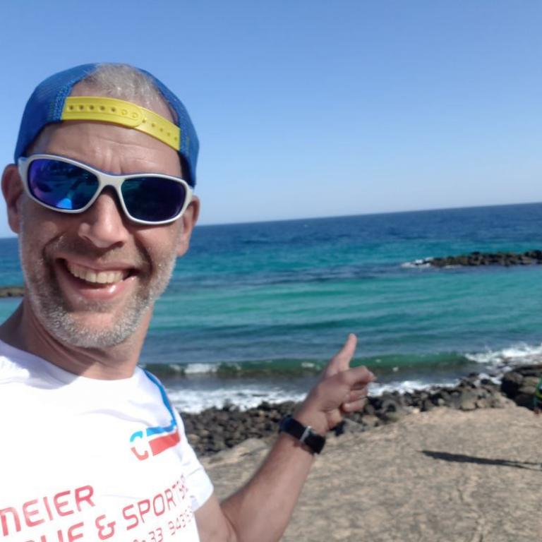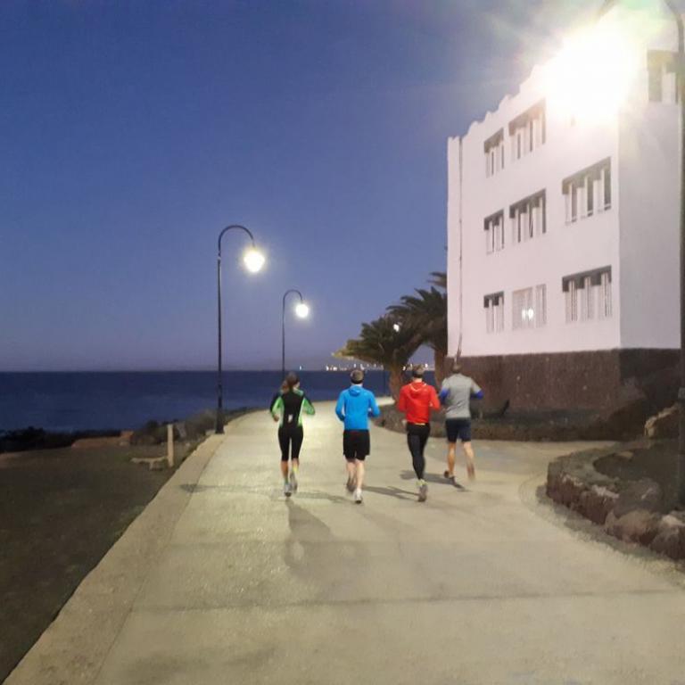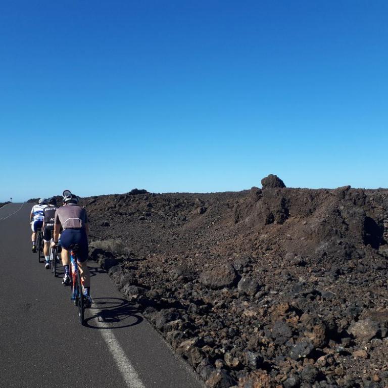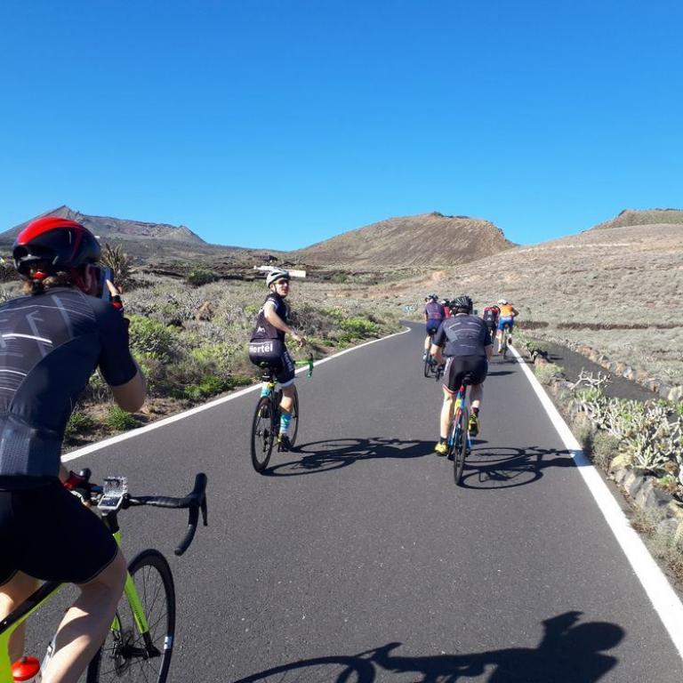 Noch vor dem Frühstück trafen wir uns zum 6 km Morgenlauf. Positiv gestimmt liefen wir in den Sonnenaufgang. Nach dem leckeren Frühstücksbuffet fuhren wir in verschiedenen Gruppen mit unterschiedlichen Leistungsklassen durch den Inselsüden bis El Golfo und in den Nationalpark Timanfaya. Lanzarotes Landschaften sind beeindruckend und besonders zugleich. Einen Teil dieses Zaubers verströmt der Nationalpark Timanfaya, ein einzigartiger Nationalpark im spanischen Netzwerk, der sich durch seine herausragende geografische Beschaffenheit auszeichnet, die Ergebnis dreier Vulkanausbrüche in den Jahren 1720, 1736 und 1824 ist. Die fehlende Vegetation, die Formen in ihrer extremen Robustheit, die Fülle an Farben, die Silhouetten der Vulkane und die Steilküste, all dies verleiht Timanfaya eine außergewöhnliche Schönheit. Gesamt kamen wir auf 103 Kilometer bei 1400 Hm. Am Nachmittag schwammen wir noch 30x100m mit 1:50 Minuten Startabstand. Immer wieder bekam ich Krämpfe in den Waden. Das kann ja bei den weiteren Einheiten lustig werden :-) An der Poolbar genehmigten wir uns noch ein Feierabendbierchen. Natürlich telefonierte ich mit meinen Mäusen Zuhause wie jeden Tag, bevor wir beim Abendessen Kalorien spachtelten und anschließend zu Ralfs Briefing gingen