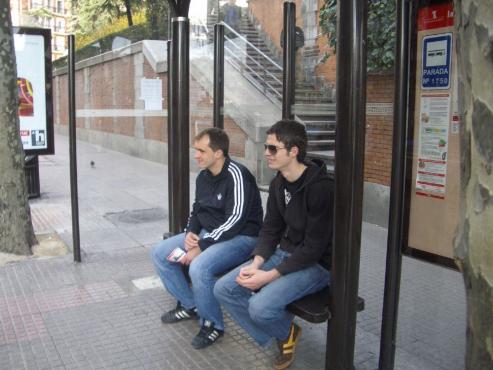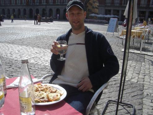 Wir marschierten die Gran Via entlang. Dies ist die Hauptstarße zwischen Plaza de Espana und Calle de San Bernado. Hier haben sich vor allem Restaurants, Schuh- und Modegeschäfte angesiedelt. Über kleine Gassen kämpften wir uns westwärts bis zum Palacio Real. Von dort waren es dann nur noch 15 Minuten bis zu unserem Hotel, das gegenüber dem Hauptbahnhof Estacion de Principe Pio steht. Wir duschten uns, was auch wieder einmal nötig war. Dannach gingen wir wieder Richtung Plaza Mayor, wo wir in einem kleinem Restaurant Paella aßen. Meine Kumpels entschieden sich für eine Fischpaella und ich nahm Gemüsepaella. Da wir doch etwas geschafft vom Tag waren, ging es bald wieder zurück ins Hotel, damit wir morgen wieder fit sind für die "Schönheiten" dieser Stadt.