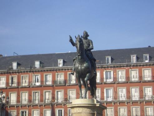 Ich bog ab in die Calle de Alcala die mich geradewegs zur Puerta del Sol führte. Von dort kam ich in die Calle de Mayor. Ich machte halt am Plaza de Mayor, wo viele Sonnenhungrige in ihren Stühlen saßen und einen Cafe tranken. Am Ende der Calle de Mayor steht königlich der Palacio de Real.