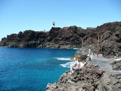 Gleich nach dem Frühstück liehen wir uns ein Auto aus. Einen Citroen C3 für 180 Euro auf 6 Tage. Wir fuhren bei herrlichem Wetter zuerst Richtung Norden bis nach Santiago del Teide. Hier bogen wir auf eine kleine Serpentinenstraße ab, die uns nach Masca führte. Masca ist ein kleines Gebirgsdörfchen im Teno Gebirge. Von hier kann man in die Masca Schlucht absteigen, was wir in 2 Tagen machen wollen. Dieses Mal kauften wir uns nur ein kühles Getränk, schlenderten durch die kleinen Gassen und genossen die Aussicht. Weiter ging es auf einer kurvenreichen Straße Richtung Norden, wo wir immer wieder an aussichtsreichen Stellen anhielten, bis wir Buenavista del Norte erreichten. Hier bogen wir nach Westen ab, wo wir auf eine atemberaubende aber auch steinschlaggefährdeter Straße kamen. Links geht es steil nach oben und rechts fallen Klippen steil nach unten ab. Am Ende der Straße erreichten wir den äußersten Nordwesten Teneriffas. Hier stehen 2 Leuchttürme, die aber nicht zu besichtigen sind.