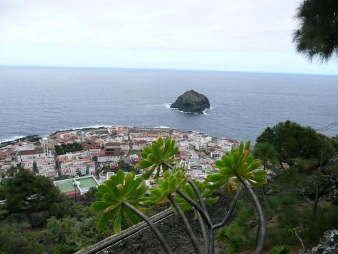 Hier machten wir zuerst einmal eine Pause und legten uns in eine kleine Bucht. Dort konnten wir herrlich schnorcheln und baden. Es gab fast keine Wellen und das Wasser war glasklar. Nach einer guten Stunde setzten wir unsere Reise fort. Es ging die gleiche Straße wieder zurück bis nach Buenavista del Norte. Hier fuhren wir dann geradeaus weiter bis zu dem kleinen Hafenstädtchen Garachico. Wir schlenderten durch die Gassen und kauften uns was Leckeres zum Essen in einem gemütlichem Restaurant. Später wanderten wir dann vom Castillo San Miguel zur Pfarrkirche Santa Ana, weiter zum Rathaus. Hier gingen wir links weiter nach oben, bis wir einen alten Pflasterweg erreichten, der uns zu einer Schranke führte. Dort gelangten wir auf einen, von Steinmäuerchen eingefassten Camino, der gemütlich in Serpentinen durch den von Kiefern besiedelten Hang ansteigt. Nach ca. 1 Stunde und 500 höhenmetern erreichten wir dann die Ortschaft San Juan del Reparo. Hier kehrten wir um und machten uns wieder auf den Rückweg. Immer wieder hatten wir einen herrlichen Ausblick über Garachico und die Küste. Am Auto angekommen, machten wir uns wieder auf den Nachhausweg. Unter der Fahrt sahen wir einen herrlichen Sonnenuntergang. Abends gingen wir wieder ins Hotelreastaurant.