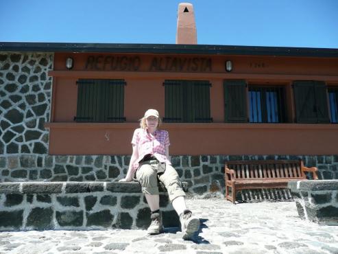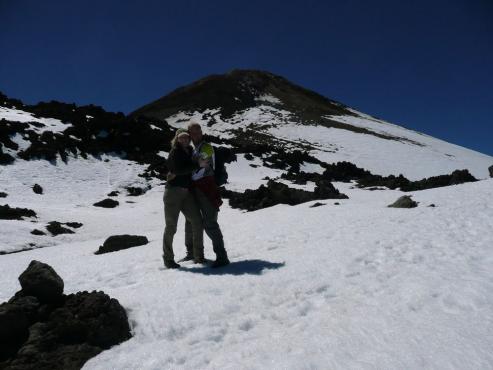 Von unserem Urlaubsort Playa de Fanabe fuhren wir mit dem Auto zum Teide Nationalpark. Vorbei am Besucherzentrum und der Seilbahn Talstation gelangten wir nach 2,5 Kilometern zu unserem Ausgangspunkt an der an der Canadas Straße TF-21 bei km 40. Hier parkten wir unser Auto und los ging unsere Wanderung auf 2350 Metern Höhe. Zuerst folgten wir einem gemütlichem Fahrweg bis zum Huevos del Teide (Teide Eiern). Nach insgesamt 1 1/2 Stunden in der Nähe des Gipfel Montana Blanca auf ca. 2700 Meter zweigt dann der Weg zum Refugio Altavista ab. Dieser steigt steil in Serpentinen nach oben an. Nach 1 1/2 Stunden anstrengendem Aufstieg erreichten wir dann auf 3260 m das Refugio Altavista. Weiter stieg der Weg durch einen Lavastrom und viel Schnee weiter nach oben. Nach fast 1 1/2 Stunden erreichten wir den Aussichtspunkt Mirador de la Fortaleza. Von hier hatten wir einen herrlichen Ausblick auf den Osten der Insel. Von hier versuchten wir querfeldein Richtung Gipfel weiter zu wandern, da wir ja kein offizielles Gipfelpermit (mein Antrag per Email wurde nicht beantwortet) für die letzten 150 Höhenmeter hatten. Leider wurden wir von einem Kontrolleur erwischt und zurückgepfiffen. Nach einer kurzen Standpauke mussten wir uns leider vom Vorhaben, den Gipfel zu besteigen, verabschieden und fuhren mit der Seilbahn wieder nach unten. Brigitte wartete in der Talstation und ich holte unser 2,5 km entferntes Auto. Dann fuhren wir wieder die herrlichen Bergstraßen zurück ins Tal.