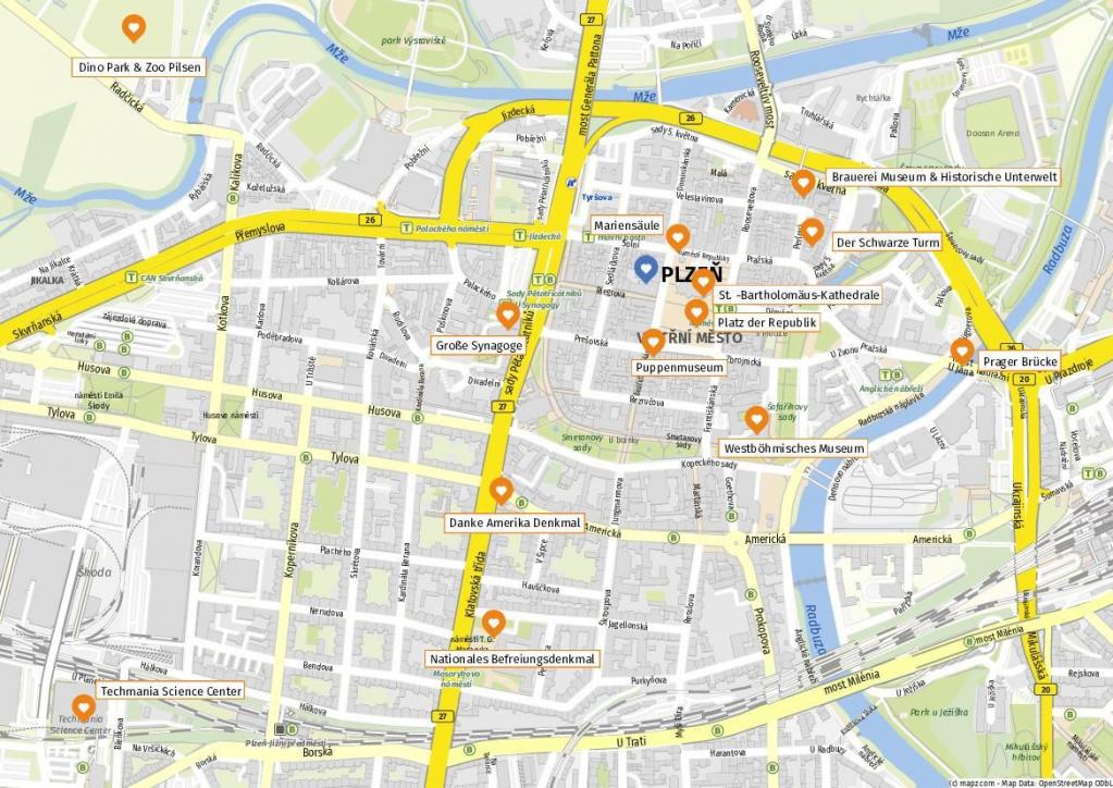 - 1. Karte von 13 Sehenswürdigkeiten in Pilsen